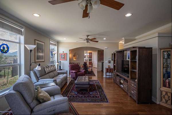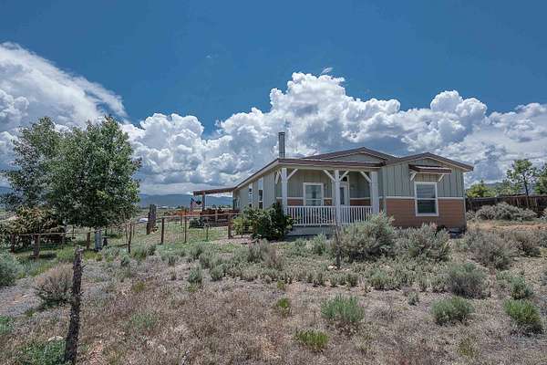 Two manufactured houses on 2.349 acres. 51 Rim View Rd is a 2BR/2BA Karsten home built in 2013 with a lovely attached, covered deck and fenced-in yard with direct access off of the kitchen and wonderful views of the mountains. 49 Las Tusas is a 4 BR/2.5 BA home with new carpet and paint, a fireplace in the living room and a fantastic back deck inside a fenced-in yard with a large chicken coop and a barn-style storage shed. The two homes have separate driveways and access points, providing privacy. Live in one, rent the other or bring all your friends and family and have your own Framily Compound! Lots of space and a convenient location with easy access to Town.