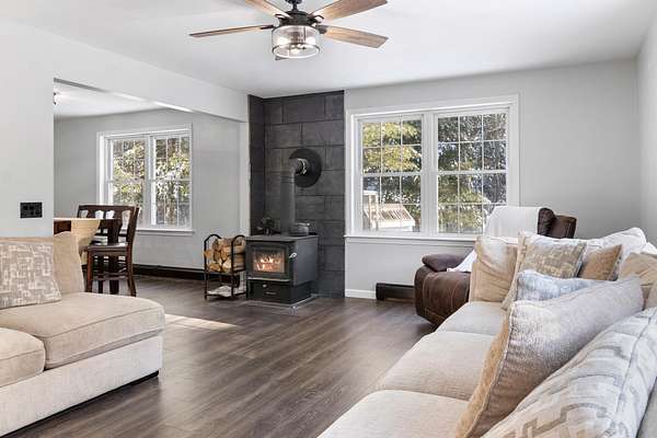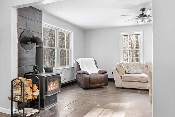 - Baseboard, Heat Pump, Hot Water, Wood, Wood Stove
