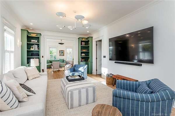 This historic Victorian home in the New Preston section of Washington is now available to rent after a tasteful top to bottom renovation, and the addition of a heated saltwater pool and hot tub. The main level of the home is highlighted by the expansive kitchen with soapstone counters, a butler's pantry, and French doors leading to a rear patio area. The remainder of the first floor features a living room, spacious great room, dining room, and an office with a full bath that could be used as a 5th bedroom. Upstairs are 4 bedrooms, each named after prior owners who have called "The Humphrey's House" home over the past 127 years, including a nephew of Mark Twain. The bright and sunny primary bedroom has a stylish walk in closet, and an en-suite bathroom with a steam shower and radiant heat flooring. A brand new bathroom in the second en-suite bedroom features the same top of the line upgrades. Two additional cozy bedrooms sit across the hall, with a third second level bath serving the two rooms. Well known British designer Graham Robert Moore has transformed this Victorian gem into a marvelous display of the modern day aesthetic without abandoning the history of the home. The 40 x 18 heated saltwater pool features an electric cover and 8 person attached hot tub. This house is just a short stroll to swimming and boating at Lake Waramaug, skiing at Mohawk Mountain, and shopping in the New Preston town center. Just 30 minutes to Metro North trains and 90 minutes from Manhattan!