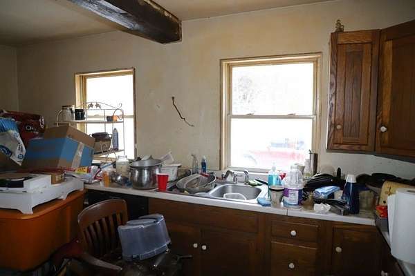 Partially finished circa 1998 26' x 24' ranch house on 2 lots totalling 1.76+/- acres. This fixer-upper has been lived in year round since its construction but never fully finished. The space consists of a kitchen that opens into a single main room being used as a living room, bedroom and dining area. Both the interior and exterior wall surfaces need finishing in places. The interior needs drywall, finished flooring, and all cosmetics. The bathroom is functional but the vanity has never been plumbed into water and waste lines. Previously there was an interior stairway to the partial basement but it was removed. Access to the dry basement is now an at-grade walkout entry. The basement is partially full height and part crawlspace. The basement is unfinished. Heat is provided by a wood pellet stove only that vents into a tile-lined masonry chimney and there is currently no central heat. The drilled well is new and the engineered septic system date to 1998. There are a few sheds on the property that contain building supplies and tools and other treasures. The property is being offered with the house broom clean but all personal property, both good and bad, on the exterior to remain for the new owner. The property is being offered in "as-is" condition. This property will require either a cash buyer or a substantial rehab loan.