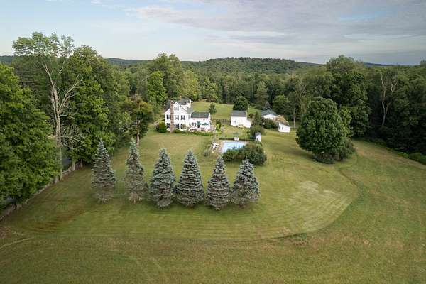 A once-in-a-lifetime opportunity to own a piece of Catskills history: this extraordinary 417-acre estate, preserved through generations since 1808, represents one of the last great pristine tracts in the region. Nestled along a quiet winding road just 90 minutes from Manhattan, the property's crown jewel is an elegantly preserved 1870 Victorian farmhouse with manicured lawns and gardens, and spectacular views across its private brook-fed, three-acre pond and rolling countryside. The 3,005-square-foot main residence and garage suite offers seven bedrooms and three baths, masterfully balancing historic charm with modern comfort. Period features include a welcoming front porch, relaxing screened porch and flagstone patio overlooking a gunite pool and lawns, perfect for entertaining and taking in the tranquil views and stunning sunsets. The estate is complemented by a charming 1942 guest cottage, originally a Grainery, providing an additional 510 square feet of living space. It features a covered porch overlooking its private pond with architectural dam and waterfall. Historic outbuildings, including a classic 1909 post-and-beam barn with two lofts, cow stable and three horse stalls, and a 1920s detached garage, originally an icehouse, testify to the property's rich agricultural heritage. Added in 2004, a 1056 square foot guest home offers flexible accommodation for staff or extended family. What truly sets this property apart are its extraordinary natural resources. Currently enrolled in both agricultural and forestry programs, the estate boasts valuable timber rights, natural streams, and established trails throughout. A unique feature is its secluded location ensuring perpetual peace and privacy. The land, divided into seven distinct parcels, offers unlimited potential for private recreation, from hunting, fishing and hiking to ATVing, horseback riding, cross-country skiing and more. The location provides the perfect balance of seclusion and accessibility. Just ten minutes from the renowned Bethel Woods Performing Arts Center and minutes from upscale destinations including Seminary Hill, Callicoon Western, Kenoza Hall, The Chatwal Lodge, and The DeBruce Inn. The area boasts world-class amenities including Resorts World Casino, Kartrite Water Park, and the Monticello Motor Club, alongside acclaimed restaurants, craft breweries, and boutique shopping in charming towns like Livingston Manor, Callicoon, Roscoe, Eldred, and Narrowsburg. Sullivan County International Airport is also conveniently located just a 10-minute drive from the farm, offering easy access for private and small aircraft travel. This legacy property presents an unprecedented opportunity for various visions - whether as a private estate, conservation retreat, luxury residential compound, or development project. Current agricultural and forestry programs are transferable. This property has been successfully run as an AirBnB location for several years. Seven separate parcels with individual SBL numbers and detailed maps available upon request. This unique holding represents an extraordinary investment in one of the Northeast's most sought-after regions. Invest in farmland, your family and/or your future with this legacy property.