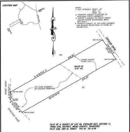 Hwy 58 North to DecaturLeft onto TN-304 onto River RoadThe entrance into Espalier Bay is approx. 4 miles on the Left. From the entrance, the lot will be on your left along the water.