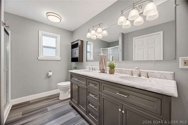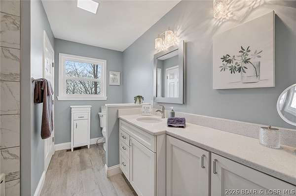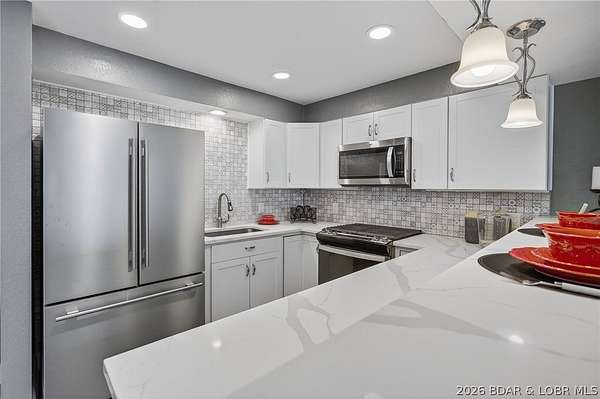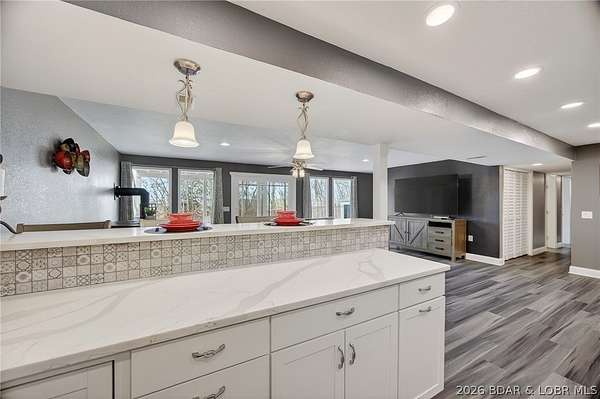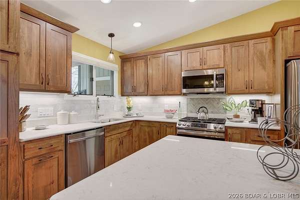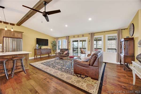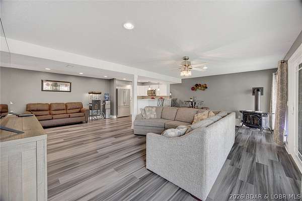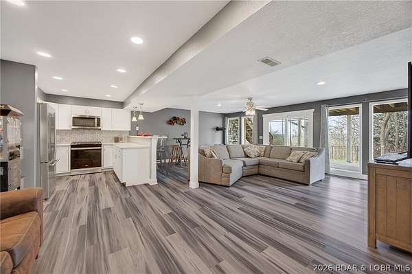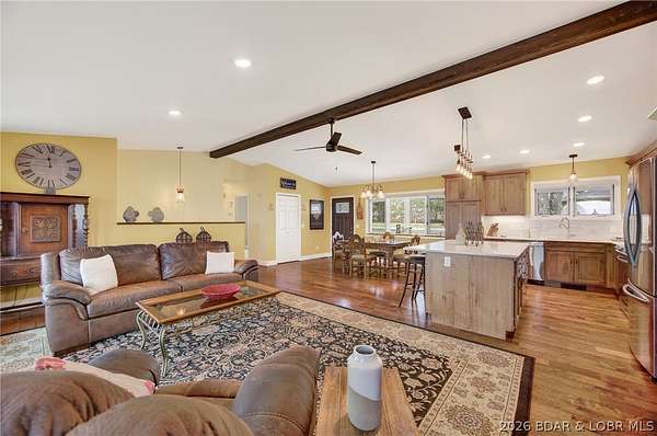 Camdenton Area, Off of Bridal Cave Rd: Prepare to be IMPRESSED w/ This Move-In-Ready (1.58 Acres) Home. It is So Lovely after it's Recent $150k-$175k Almost Total REMODEL Inside & Outside, (Mostly between 2024-25). This Home Offers 2970 SqFt, w/Oversized Attch'd 2 CarGarg, 4 Bed (1 non-conform'g)/3 Bath. The Home's REMODEL includes: 2 Kitch's (Custom Cabinets-Quartz Counters-Back Splashes-1 Big Island), 2 Liv'g Areas, 3Full Baths, Covered Back Patio & Upper Deck, Bedrms, Most Appliances, Staircase, Upgraded Cent'l Vac, Hm H20 Filtration, New Roof/Gutter, Stone/Vinyl Siding Exterior, Elect & Plumb'g, New Bonus Rm, Wood & Vinyl Floors, Front Porch, Sliding Doors+Some Windows & So Much More. It also Includes 35+Ft Full RV Pad w/Elect, H20, Sewer Hookups. Lrg Gentle Concrete Park'g Pad (for 5-6 cars) w/ Full French Drain. On Cul-de-sac in a Quiet, Sleepy, Secluded Friendly Neighborhood. 570 Ft Rd Front. Large FENCED Back Yrd w/ 2 gates & Stg Bldg. Lovely Sunsets w/ Big trees to Block Warmer Afternoon Sun. Seasonal Lake view. 2 Min to Boat Slip Rental just Down the Hill from Home. 3-5 Minutes Easy Drive to Town. What Else Can you Ask for? Must see Detailed EXTRA FEATURE SHEET!
