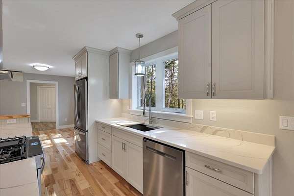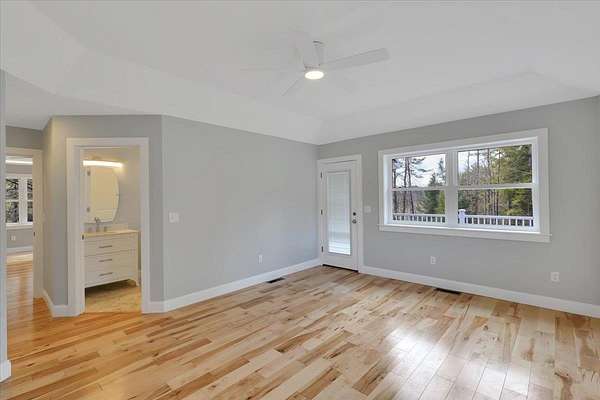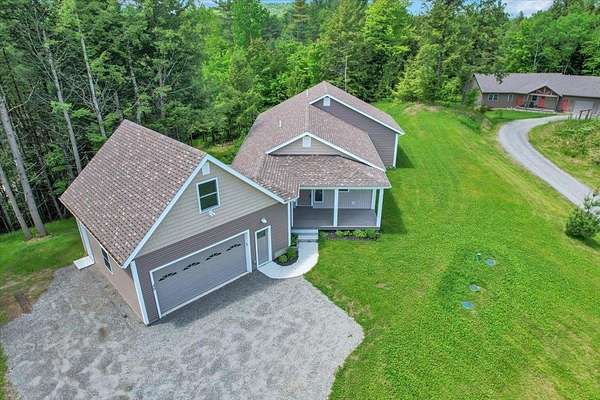 Welcome to 49 Hemlock Circle in Jericho -- a stunning new construction home designed for modern comfort and Vermont living. This thoughtfully crafted 3-bedroom, 2-bath home sits on 2.3 acres in a private subdivision, complete with an additional 80 acres of common land to explore. Perfect for the outdoor enthusiast, you'll have mountains, trails, and year-round recreation right at your fingertips. Inside, you're greeted by beautiful hardwood floors, abundant natural light, and an open-concept layout that blends style and function. The dining area flows seamlessly into the gourmet kitchen, featuring an oversized island ideal for entertaining while preparing meals. The kitchen opens to the vaulted great room, anchored by a cozy gas fireplace -- the perfect gathering spot in every season. The primary suite is a private retreat with vaulted ceilings, a spa-like en suite bath, and direct access to the covered porch, also connected to the main living area for easy indoor-outdoor living. Two additional bedrooms provide flexibility for family, guests, or office space. The lower level offers a spacious finished rec room, while the large bonus room above the oversized 2-car garage is perfect for a home office, studio, or gym. Central AC adds year-round comfort. Set in a peaceful, rural location yet just minutes from I-89, Essex, and Williston, this home offers the best of both worlds -- quiet country living with easy access to local conveniences. Experience the Vermont lifestyle!