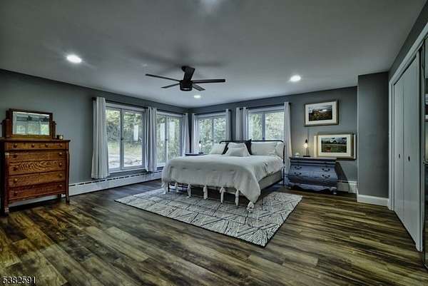 28 ACRES of FARM ASSESSED PROPERTY SET ON A HILLSIDE with MAGNIFICANT VIEWS featuring 3 LEVEL FIELDS of OPEN & WOODED LOTS, VERY LOW TAXES, PERFECT FOR FARMING, AGRICULTURE OR POSSIBLE SUBDIVISION & currently income producing. This charming original farmhouse boasts large windows that fill the home with natural light offering stunning countryside views. 4 / 5 bedrooms, living room, formal dining room, recreation room, family room, & a unique 3-season room with a wood-beam ceiling and brick-faced fireplace, ideal for relaxing or entertaining. One of these spaces could be used as an office/exercise room. The home is available furnished (few exceptions), features newer gleaming floors & warm, inviting colors throughout. Stay cozy in winter with two fireplaces/wood-burning stoves. First floor master bedroom & bath provide privacy, while the gourmet eat-in kitchen with a center island, stainless-steel appliances, side entry to a laundry/mud room, new roof, windows, hot water tank, & Hardie board siding. The property includes two above-ground oil tanks, newer appliance. Additional features include 3 sheds, one of which is new- equipped with electricity, water, AC/heat, & an inviting outdoor fire pit. Just an hour from NYC, close to the Poconos / Pennsylvania border, this property offers a perfect mix of suburban charm & recreational opportunities. It is conveniently located near Routes 80 & 46 for easy commuting & is surrounded by excellent schools including Blair Academy.
