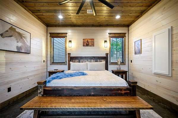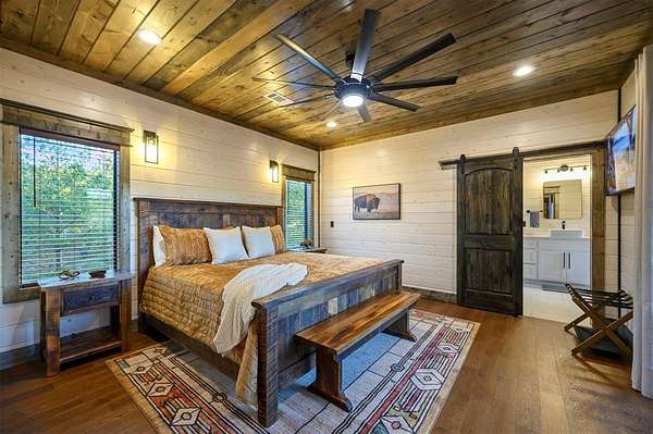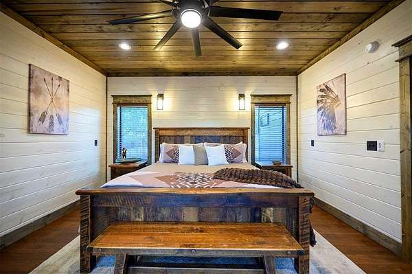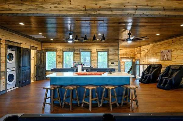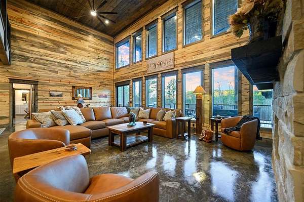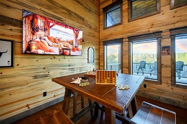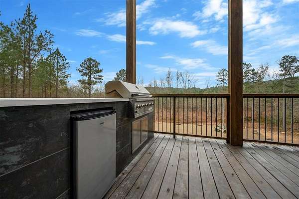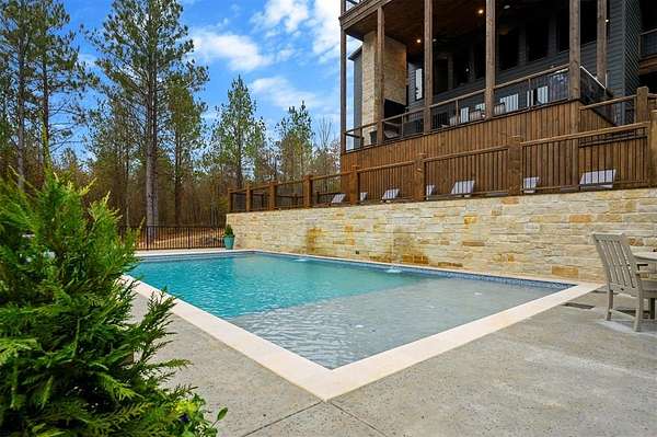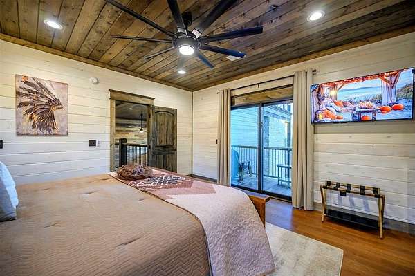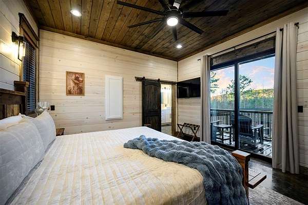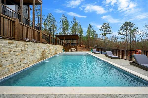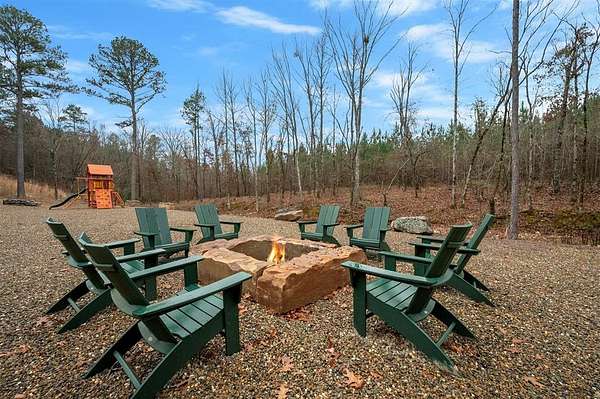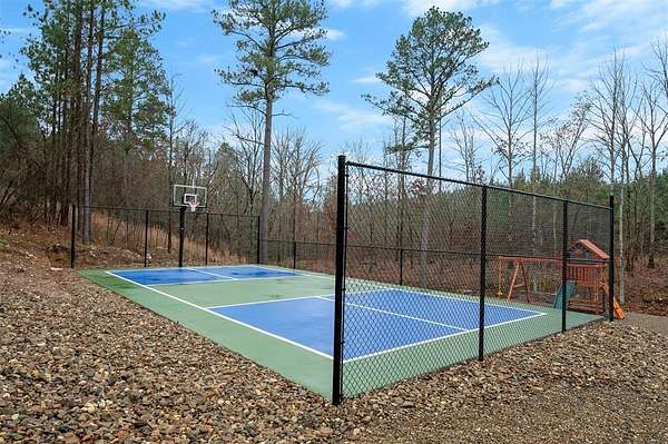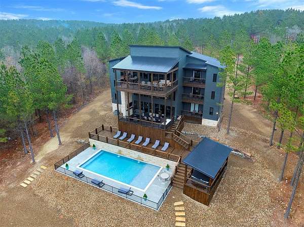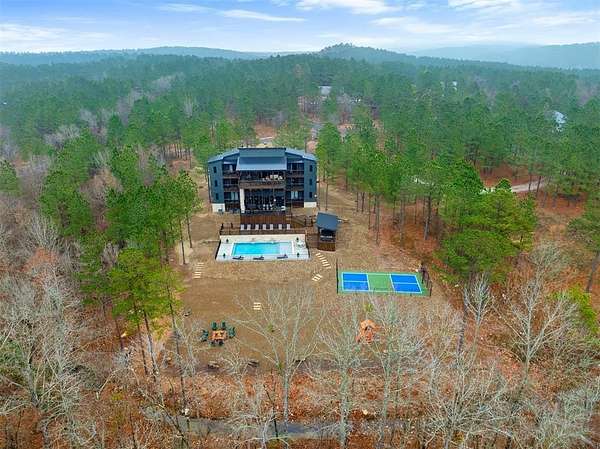 IN GROUND GUNITE HEATED POOL. PICKLEBALL COURT. VIEW. SEASONAL CREEK. 6 FAMILY CABIN THAT SLEEPS 24. 1.67 ACRES. CHECK BACK SOON FOR UPDATED PHOTOS OF THIS NEW CONSTRUCTION CABIN TO BE COMPLETED. Extraordinary three story cabin on a will be an extraordinary short-term rental property. This newly constructed cabin boasts six master bedrooms, each with their own ensuite full bathroom and private balcony overlooking the back of the property. The 20x40 foot in ground gunite heated pool and pickleball court will make this property a game changer in the short-term rental market! The spacious first floor includes the kitchen dining room and a huge living area with a large back covered deck overlooking the pool. On the second floor is the bunk room with its own full bathroom to accommodate 12 guests in itself. On the third floor is a massive game room with its own half bath and a wet bar in the center of the game room. Step outside the game room to the spacious third floor covered deck providing you and your guests a view in the distance of the gorgeous trees, the pool, pickleball and the seasonal creek. The extra long Circle Drive provides enough space for all of your guests to park as well as space for boat trailers and ATV Trailers. This property is located in the heart of Hochatown but far enough away from the hustle and bustle of the town, providing you privacy and peace and quiet. A very similar cabin that has been on the short-term rental market for one year has an impressive rental history grossing $350,000.