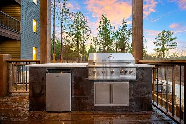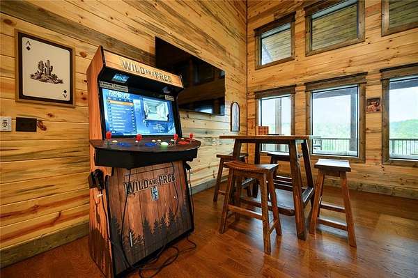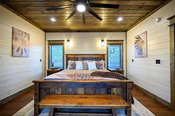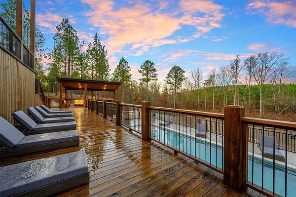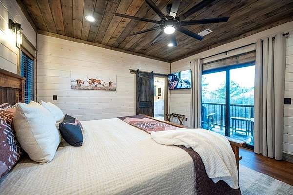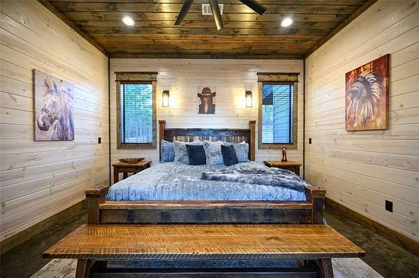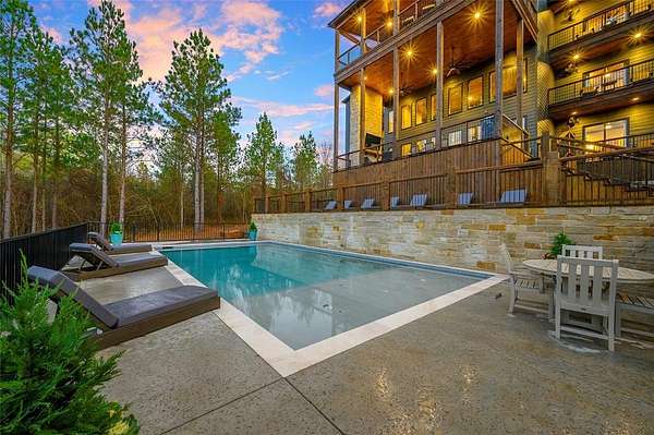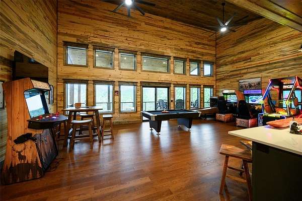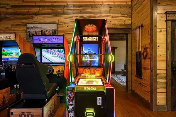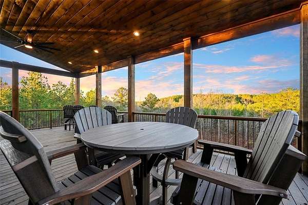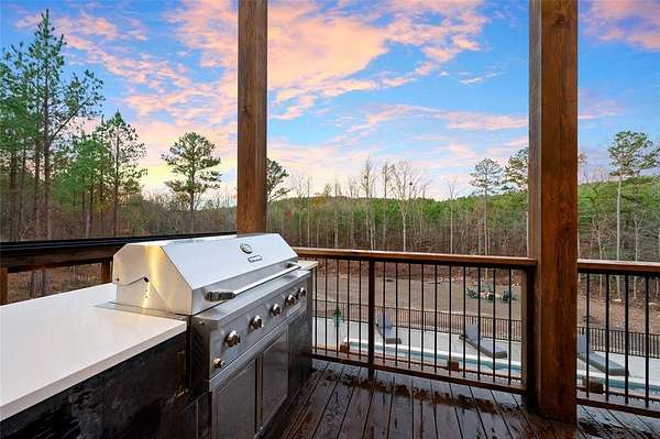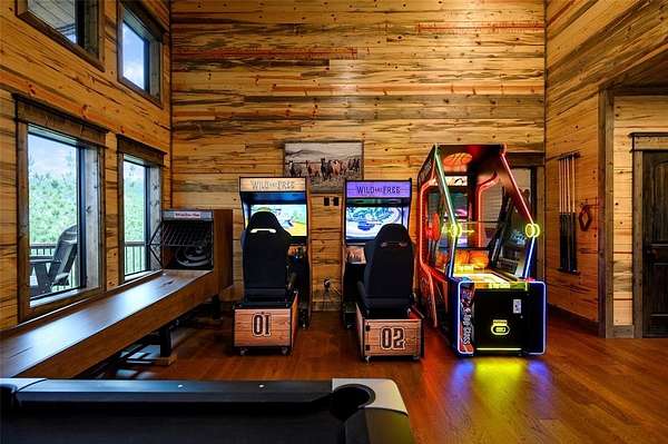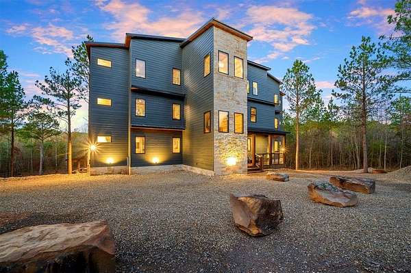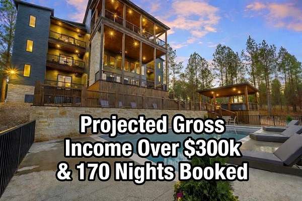 IN GROUND GUNITE HEATED POOL. PICKLEBALL COURT. VIEW. SEASONAL CREEK. 6 FAMILY CABIN THAT SLEEPS 24. 1.67 ACRES. CHECK BACK SOON FOR UPDATED PHOTOS OF THIS NEW CONSTRUCTION CABIN TO BE COMPLETED. This extraordinary three story cabin recently went live as a short term rental and already has an impressive $168,000 on the books with only 88 days booked for the first year. Similar new cabins of this size with a pool and extra amenities have 150-175 days booked. This cabin is projected to make over $300,000 in the first year of being a short term rental. This newly constructed cabin boasts six master bedrooms, each with their own ensuite full bathroom and private balcony overlooking the back of the property. The 20x40 foot in ground gunite heated pool and pickleball court will make this property a game changer in the short-term rental market! The spacious first floor includes the kitchen dining room and a huge living area with a large back covered deck overlooking the pool. On the second floor is the bunk room with its own full bathroom to accommodate 12 guests in itself. On the third floor is a massive game room with its own half bath and a wet bar in the center of the game room. Step outside the game room to the spacious third floor covered deck providing you and your guests a view in the distance of the gorgeous trees, the pool, pickleball and the seasonal creek. The extra long Circle Drive provides enough space for all of your guests to park as well as space for boat trailers and ATV Trailers. This property is located in the heart of Hochatown but far enough away from the hustle and bustle of the town, providing you privacy and peace and quiet. A very similar cabin that has been on the short-term rental market for one year has an impressive rental history grossing $350,000.