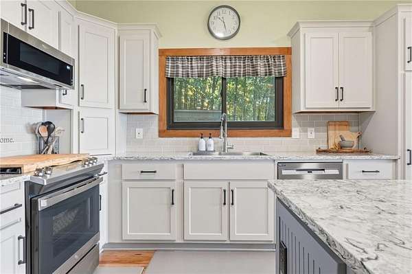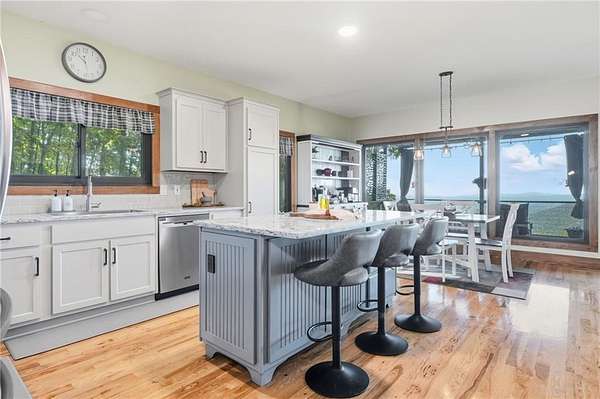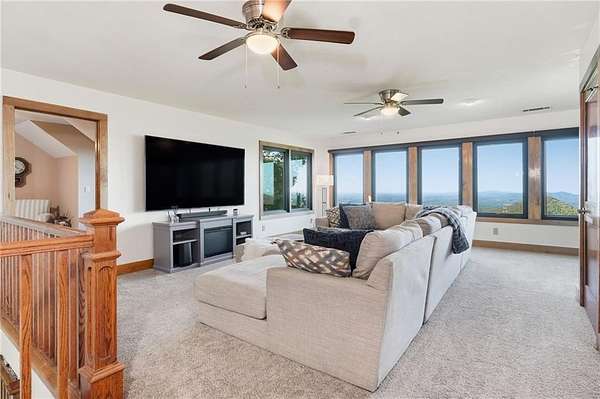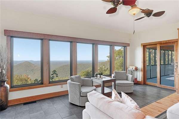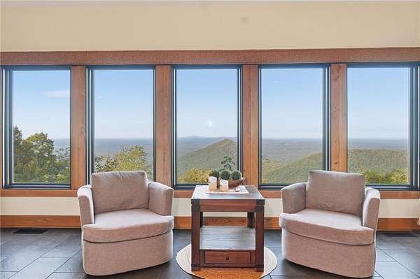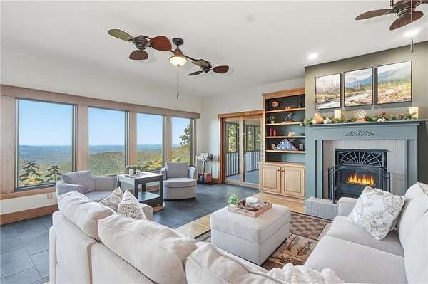 Experience breathtaking long-range southwest mountain and lake views (sunsets included!) from this exceptional custom home perched high on a private ridge in one of Jasper's most desirable mountain communities. This 5-bedroom, 3-bath retreat sits behind a private gated entrance with a circular driveway for easy access and convenient kitchen-level garage parking. Truly one of a kind, this home combines elegant design with thoughtful updates, offering an ideal blend of luxury and everyday comfort. The main level showcases a spacious great room with soaring ceilings, a stone fireplace, and walls of windows framing the panoramic mountain and water views. The stunning updated kitchen features custom cabinetry, quartz countertops, and top-of-the-line appliances-perfect for both everyday living and entertaining. The primary suite on the main level is a true sanctuary, offering access to the covered deck to enjoy the view, along with a spa-inspired bath featuring double vanities, an oversized walk-in shower, and a separate whirlpool tub. All bathrooms have been beautifully updated, continuing the home's modern, cohesive design. Throughout most of the home, Anderson "Energy Star" insulated windows with UV protection enhance comfort and efficiency, while motorized shades on the main and upper levels provide climate control at the touch of a button. The fully finished terrace level expands the living space with a large family room, home gym, and additional bedrooms-ideal for guests or multi-generational living. Outdoor spaces are equally impressive, including multiple decks and screened porches perfect for enjoying the sweeping mountain vistas. A recently upgraded well system with a 1,500-gallon tank, new pumps, and a DAP pressure monitoring system ensures consistent water pressure and reliability. With its perfect combination of craftsmanship, comfort, and modern functionality-plus easy access to Jasper, Ellijay, Dawsonville, and nearby hiking trails-this home is a rare opportunity to own a move-in-ready mountain retreat with every upgrade already done.
