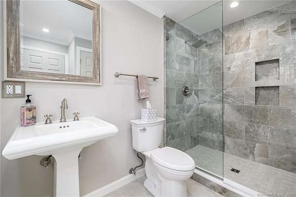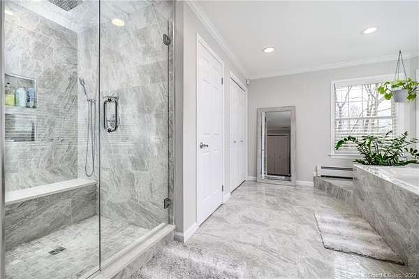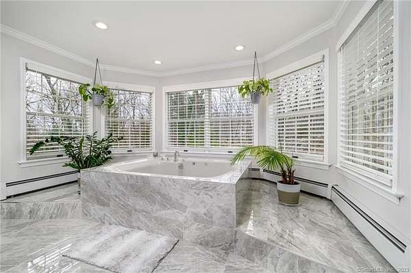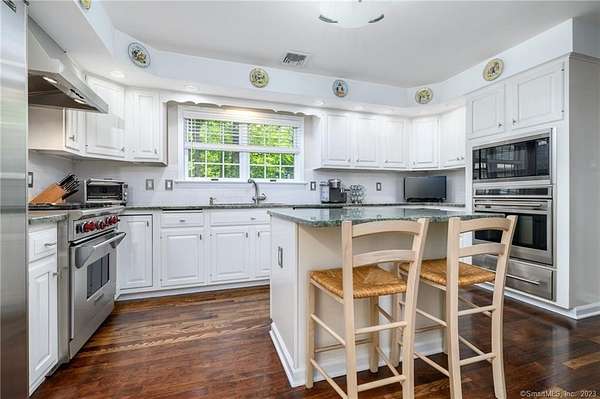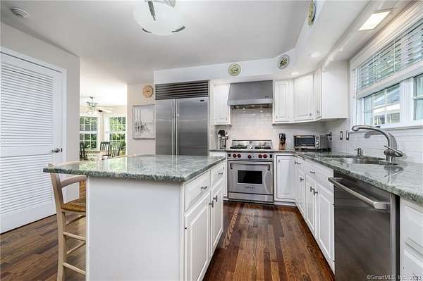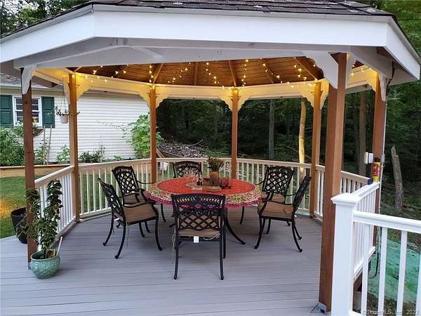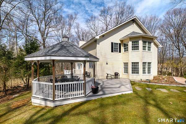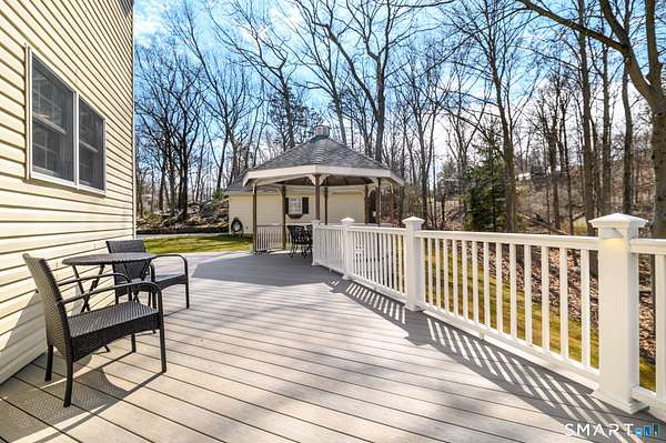 Tucked away at the end of a peaceful N. Stamford cul-de-sac, this exceptional home lives like a private retreat-where luxury, comfort, and privacy come together in perfect balance. Surrounded by mature trees and professionally designed landscape lighting, the property offers a truly serene, resort-like setting day and night. Step inside to sunlit, beautifully appointed interiors featuring hardwood floors, custom millwork, and thoughtfully designed spaces. The chef's kitchen is stunning and functional, with premium appliances including a Sub-Zero, double ovens, warming drawer, and an oversized walk-in pantry-ideal for everyday living and elevated entertaining alike. The home's layout flows effortlessly from room to room, with a formal dining space for memorable gatherings and a study or a perfect home office. Luxury window treatments throughout add warmth, texture, and a polished finish. The primary suite is a true haven, featuring a spa-inspired bath with soaking tub, glass-enclosed rain shower, dual vanities, and two walk-in closets. The walk-out lower level enhances the lifestyle experience with a professional wine cellar, flexible recreation space, and dedicated workshop. Outdoors, experience resort-like living with an expansive deck, charming gazebo, and a privately positioned ThermoSpa hot tub-creating the perfect setting for relaxation under the stars. More than a home-it's a refined escape, offering an exceptional lifestyle in one of Stamford's most desirable settings.