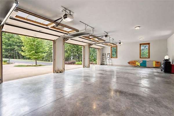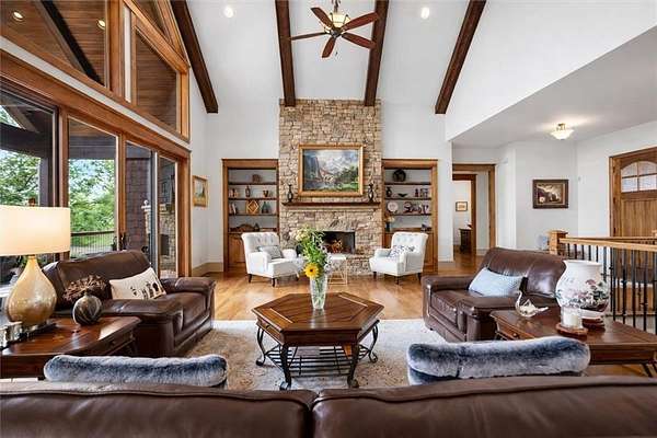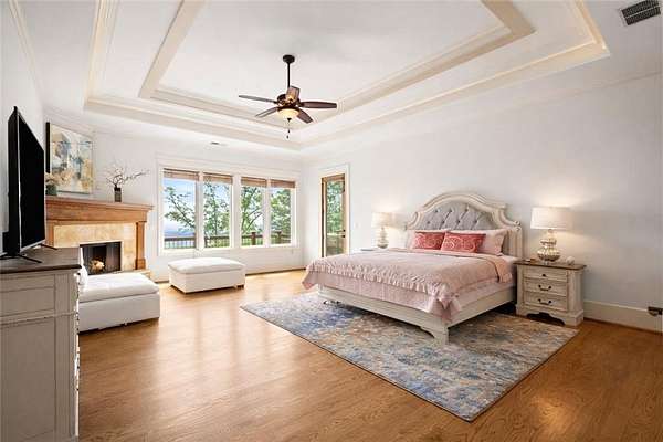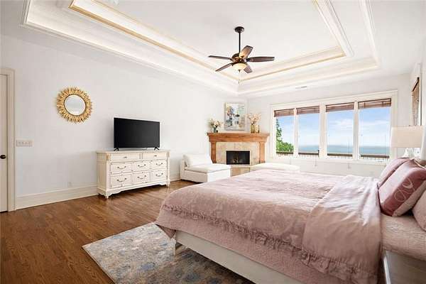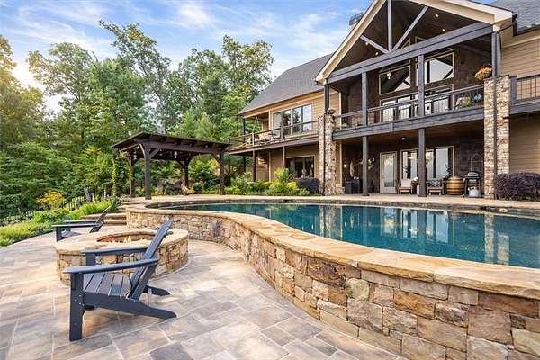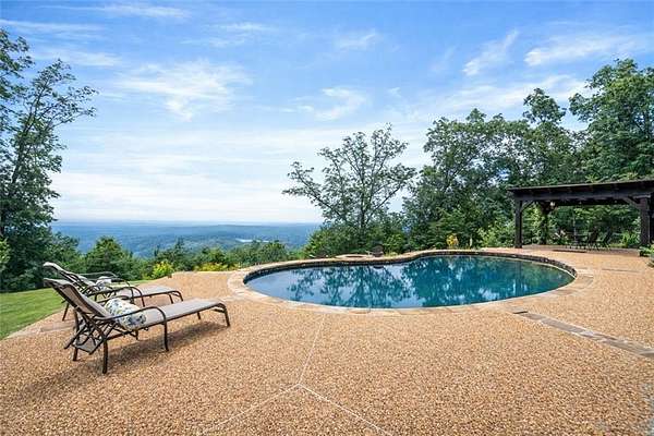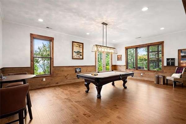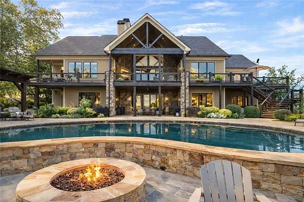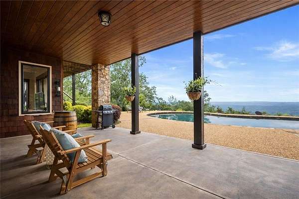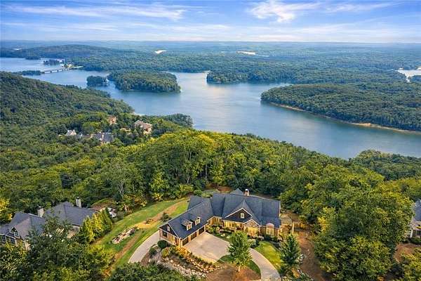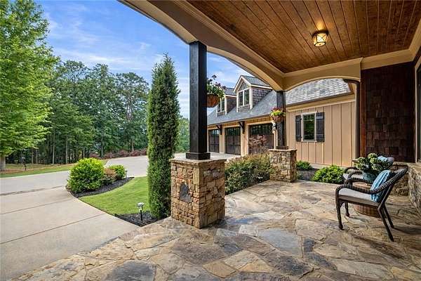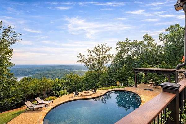 Stunning Custom-Built Craftsman Home Nestled in an exclusive gated community with Breathtaking Panoramic Lake & Mountain Views from nearly every room. From the expansive Trex deck that stretches across the back of the home, to the terrace-level porch and main living spaces, the outdoors is always in view. Step inside to discover a Great Room featuring soaring cathedral ceilings with exposed beams, a beautiful stone fireplace with gas logs, and custom built-ins-perfect for cozy evenings or entertaining. The Chef's Kitchen is a dream, boasting exquisite custom cabinetry, double ovens, and an oversized granite island, all open to the spacious Dining and Great Rooms for seamless entertaining. The main level showcases site-finished hardwood floors, soaring 10'+ ceilings, a spacious Primary Suite with a floor-heated spa-style bathroom, and a dedicated Office/Guest Bedroom-each detail reflecting top-tier craftsmanship and thoughtful design. A secondary suite on the opposite side of the home offers ideal accommodations for guests or serves perfectly as a private professional workspace. Downstairs, the terrace level is ideal for entertaining, with a spacious Family Room, a dedicated temperature control Wine Storage Room, two additional Bedrooms, and a full Bath with exterior pool access. A cozy home theater and sleek, modern-style open bar set the stage for unforgettable family movie nights and lively gatherings with friends. There's also a fully finished personal gym, offering flexible space for fitness, hobbies, or recreation. An extra plumbing system is already in place for an additional full bathroom, providing further potential for customization. Enjoy the outdoors in your Pebble Tec, heated, saltwater pool or unwind by the firepit as you take in the extraordinary views. With six spacious garage bays, there's room for everything-from cars to boats, from living, work to hobbies. This home is elevator-ready, adding future convenience. The community offers resort-style amenities including a clubhouse, pool, and tennis courts, and it's just minutes from I-75, express lanes, and Hwy 41 for easy access to shopping, dining, and travel. Come experience luxury, comfort, and unforgettable views-this is your forever home!