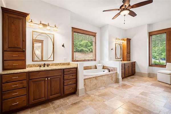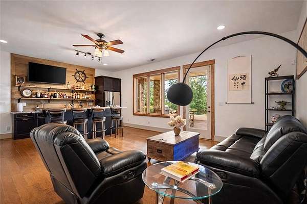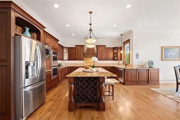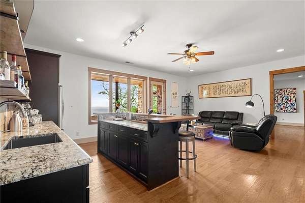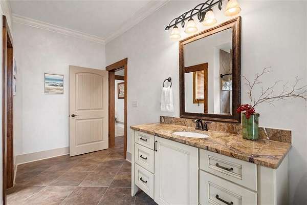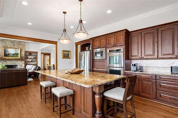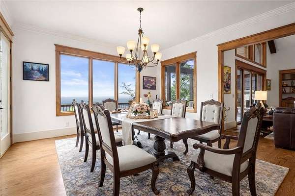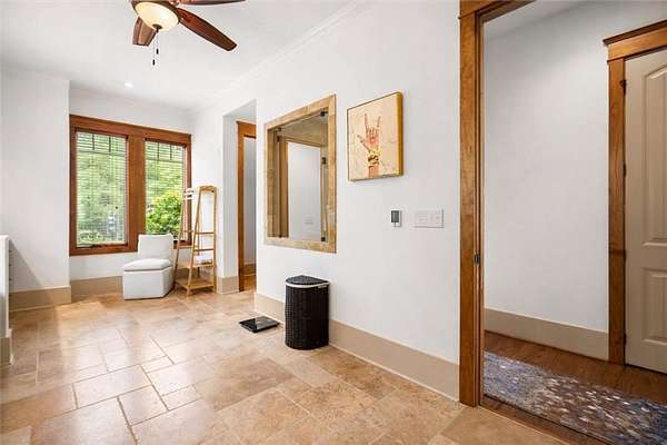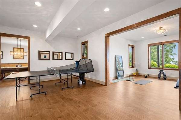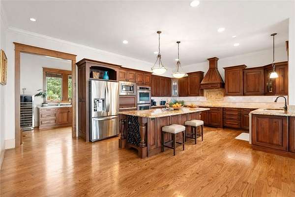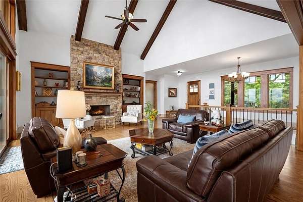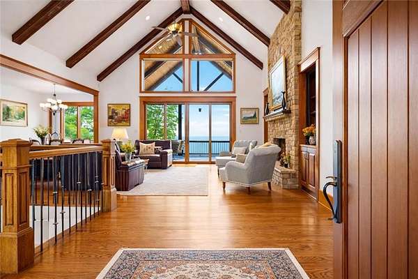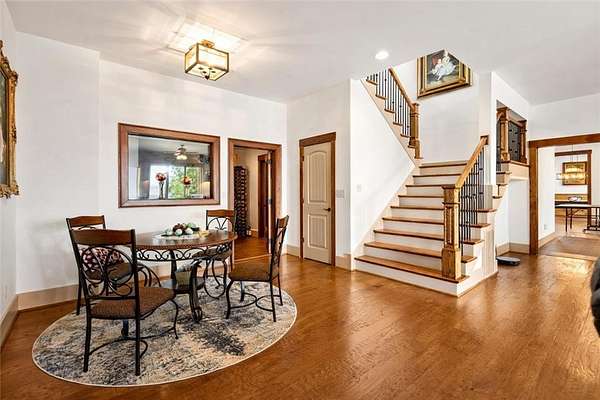Stunning Custom-Built Craftsman Home Nestled in an exclusive gated community with Breathtaking Panoramic Lake & Mountain Views from nearly every room. From the expansive Trex deck that stretches across the back of the home, to the terrace-level porch and main living spaces, the outdoors is always in view. Step inside to discover a Great Room featuring soaring cathedral ceilings with exposed beams, a beautiful stone fireplace with gas logs, and custom built-ins-perfect for cozy evenings or entertaining. The Chef's Kitchen is a dream, boasting exquisite custom cabinetry, double ovens, and an oversized granite island, all open to the spacious Dining and Great Rooms for seamless entertaining. The main level showcases site-finished hardwood floors, soaring 10'+ ceilings, a spacious Primary Suite with a floor-heated spa-style bathroom, and a dedicated Office/Guest Bedroom-each detail reflecting top-tier craftsmanship and thoughtful design. A secondary suite on the opposite side of the home offers ideal accommodations for guests or serves perfectly as a private professional workspace. Downstairs, the terrace level is ideal for entertaining, with a spacious Family Room, a dedicated temperature control Wine Storage Room, two additional Bedrooms, and a full Bath with exterior pool access. A cozy home theater and sleek, modern-style open bar set the stage for unforgettable family movie nights and lively gatherings with friends. There's also a fully finished personal gym, offering flexible space for fitness, hobbies, or recreation. An extra plumbing system is already in place for an additional full bathroom, providing further potential for customization. Enjoy the outdoors in your Pebble Tec, heated, saltwater pool or unwind by the firepit as you take in the extraordinary views. With six spacious garage bays, there's room for everything-from cars to boats, from living, work to hobbies. This home is elevator-ready, adding future convenience. The community offers resort-style amenities including a clubhouse, pool, and tennis courts, and it's just minutes from I-75, express lanes, and Hwy 41 for easy access to shopping, dining, and travel. Come experience luxury, comfort, and unforgettable views-this is your forever home!