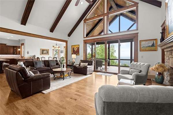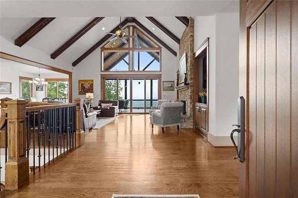 Stunning Custom-Built Craftsman Home Nestled in an exclusive gated community with Breathtaking Panoramic Lake & Mountain Views from nearly every room. From the expansive Trex deck that stretches across the back of the home, to the terrace-level porch and main living spaces, the outdoors is always in view.