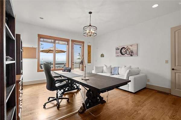 Enjoy the outdoors in your Pebble Tec, heated, saltwater pool or unwind by the firepit as you take in the extraordinary views. With six spacious garage bays, there's room for everything--from cars to boats, from living, work to hobbies.