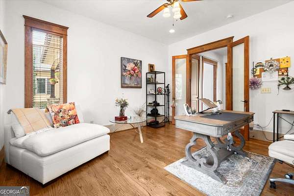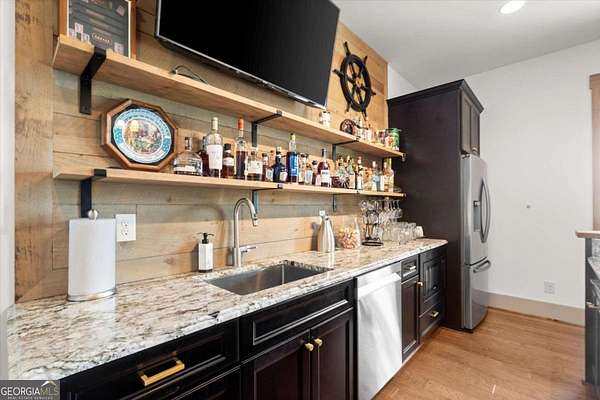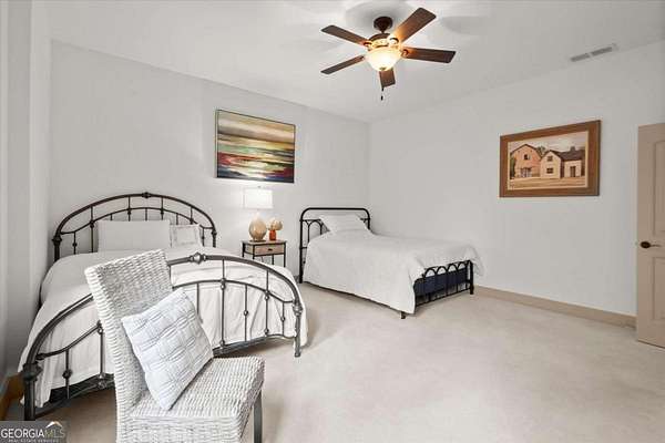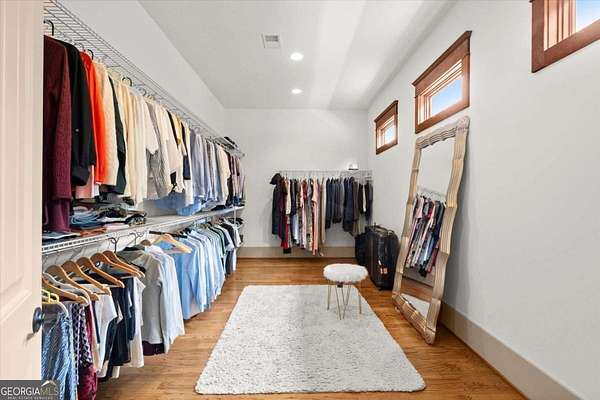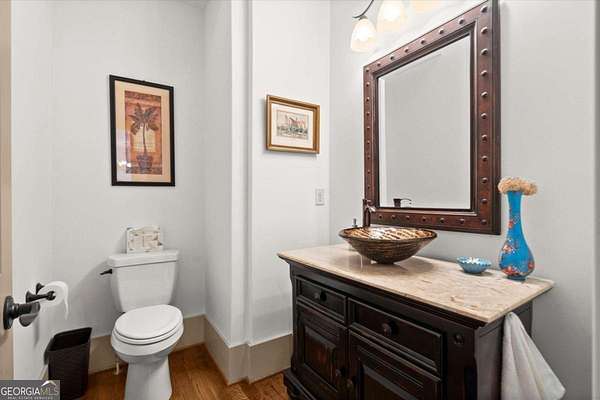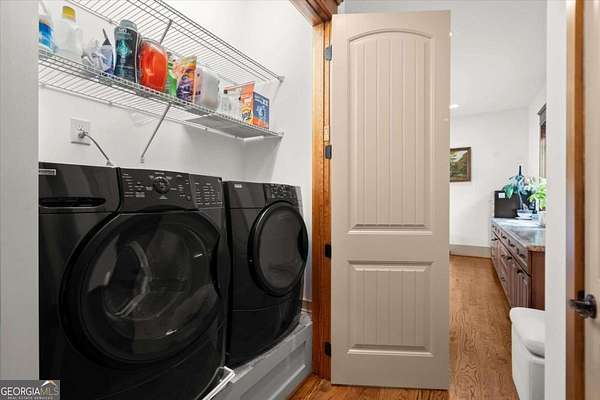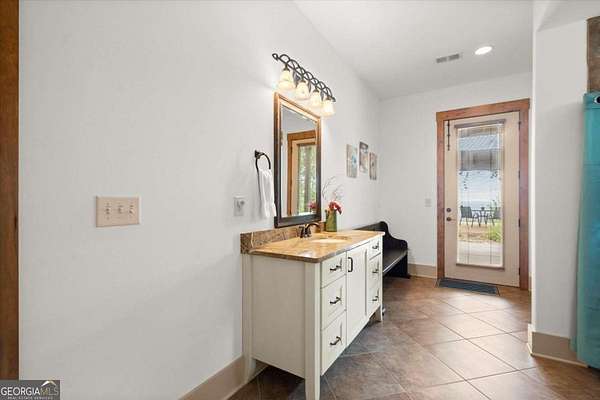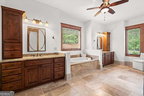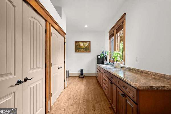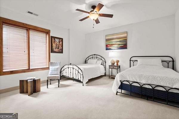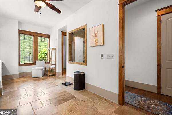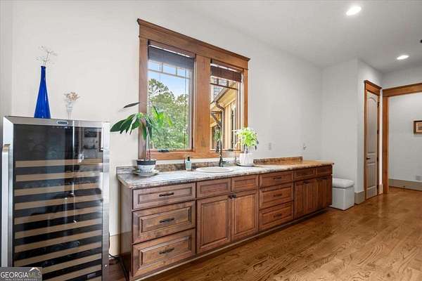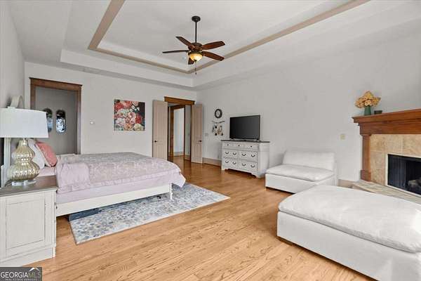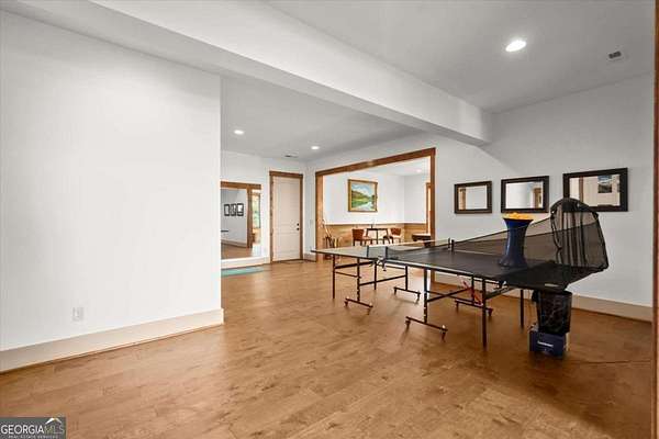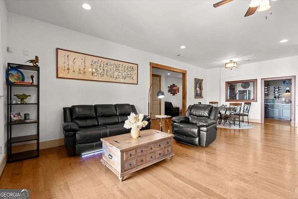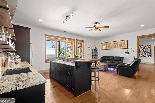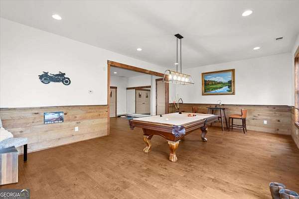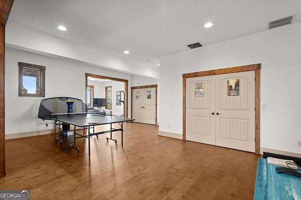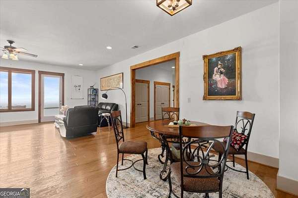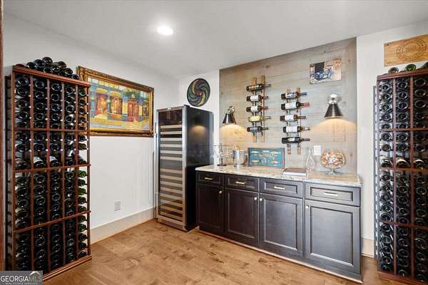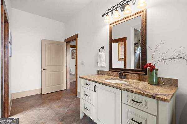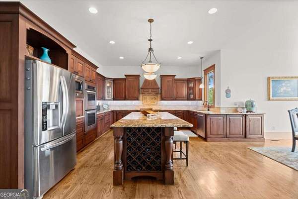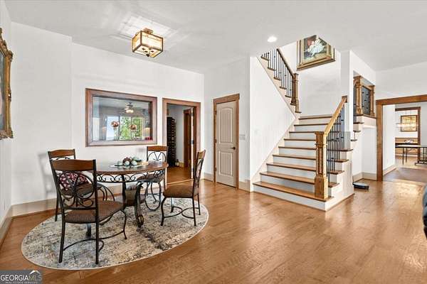 Stunning Custom-Built Craftsman Home Nestled in an exclusive gated community with Breathtaking Panoramic Lake & Mountain Views from nearly every room. From the expansive Trex deck that stretches across the back of the home, to the terrace-level porch and main living spaces, the outdoors is always in view. Step inside to discover a Great Room featuring soaring cathedral ceilings with exposed beams, a beautiful stone fireplace with gas logs, and custom built-ins-perfect for cozy evenings or entertaining. The Chef's Kitchen is a dream, boasting exquisite custom cabinetry, double ovens, and an oversized granite island, all open to the spacious Dining and Great Rooms for seamless entertaining. The main level showcases site-finished hardwood floors, soaring 10'+ ceilings, a spacious Primary Suite with a floor-heated spa-style bathroom, and a dedicated Office/Guest Bedroom-each detail reflecting top-tier craftsmanship and thoughtful design. A secondary suite on the opposite side of the home offers ideal accommodations for guests or serves perfectly as a private professional workspace. Downstairs, the terrace level is ideal for entertaining, with a spacious Family Room, a dedicated temperature control Wine Storage Room, two additional Bedrooms, and a full Bath with exterior pool access. A cozy home theater and sleek, modern-style open bar set the stage for unforgettable family movie nights and lively gatherings with friends. There's also a fully finished personal gym, offering flexible space for fitness, hobbies, or recreation. An extra plumbing system is already in place for an additional full bathroom, providing further potential for customization. Enjoy the outdoors in your Pebble Tec, heated, saltwater pool or unwind by the firepit as you take in the extraordinary views. With six spacious garage bays, there's room for everything-from cars to boats, from living, work to hobbies. This home is elevator-ready, adding future convenience. The community offers resort-style amenities including a clubhouse, pool, and tennis courts, and it's just minutes from I-75, express lanes, and Hwy 41 for easy access to shopping, dining, and travel. Come experience luxury, comfort, and unforgettable views-this is your forever home!