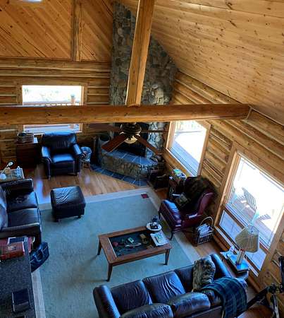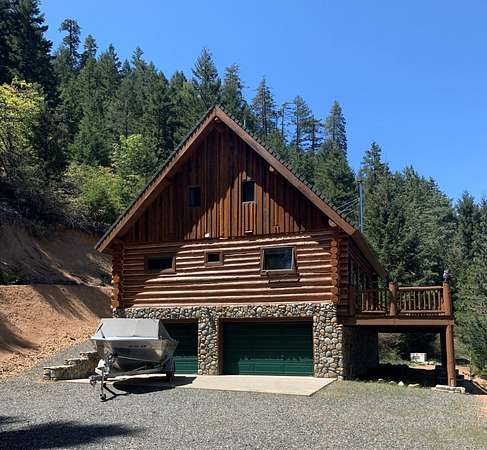 Off-the-grid log home with panoramic views of Mt. Shasta and Trinity Lake. Located up Bowerman Ridge, this seasonal retreat has all you need to get back to nature. The 48V solar system with new lithium batteries and back-up generator provides all the power you will need. Winter access depended upon snowfall to access the property and summer months boasts close proximity to Trinity Lake and new boat ramp/marina. For pilots, there is also a 3700' airport at Trinity Center. Custom cabinets, hand-chinked logs, granite counters, Japanese soaking tub, hardwood floors and Anderson Windows highlight the many extras. Two bedrooms and two baths on the main level with the loft large enough to sleep several more guests. The 1100 sq ft finished garage also houses the washer & dryer and solar inverter and batteries. The well boasts a healthy 10 gallons per minute per seller with gravity feed to house from the 2000 gallon storage tank. The mountains are calling you and your family...seize the moment as these true off-grid quality properties are few and far between. The well provides a consistent year-round 6 gallons / minute. You want more wilderness, the Trinity Alps are just a few miles down the road.