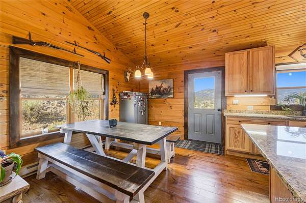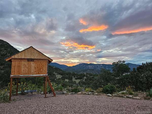 Welcome to your Cactus Mountain basecamp, where wide-open skies, privacy, and functionality come together on 35+ acres bordering BLM land—providing direct access to thousands of acres right out your back door. At approximately 6,500 feet in elevation, enjoy Colorado’s four-season climate with moderate temperatures, expansive views, and plenty of usable ground. The 2-bedroom, 2-bath home features warm wood finishes, an open layout, and a pellet stove that adds comfort and efficiency—well-suited for full-time living or a weekend retreat. Built with self-reliance in mind, the property includes a domestic well along with a cistern system, paid solar, and wiring in place for a backup generator, offering flexibility and peace of mind. The improvements truly set this property apart. A 30x40 Cleary building with heat and a bathroom provides excellent space for a workshop, storage, or projects. Full RV hookups make it easy to host guests or create additional living options. A chicken coop with electric is already in place, supporting a homestead setup. With 360-degree views, usable acreage, and a location that balances privacy with year-round access, this property offers more than just a place to live—it supports a flexible, self-sufficient lifestyle. The Arkansas River Valley of Southern Colorado is a paradise for outdoor enthusiasts, offering gold medal fishing, world-class whitewater rafting, and endless hiking trails surrounded by stunning mountain scenery. With access to BLM land, Texas Creek ATV Park, and the Royal Gorge nearby, recreation opportunities are close at hand. The towns of Salida, Westcliffe, and Cañon City offer dining, shopping, art, and community events, along with hot springs, rock climbing, and exceptional stargazing throughout the year.