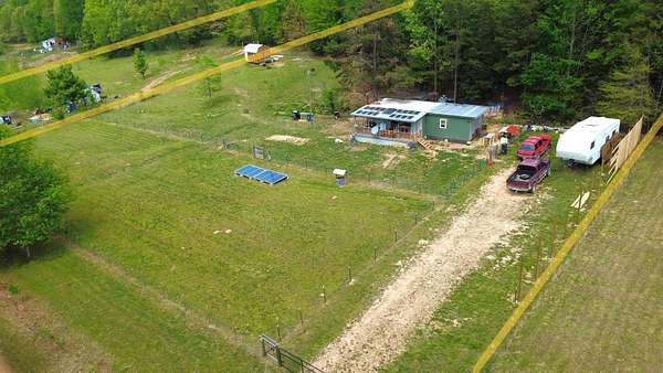 One parcel includes a structure that could serve as a hunting cabin, weekend retreat, or rudimentary off-grid home. Current water supplied by a spring & rain catchment, while electricity is presently solar-based with battery backup. Utility electric may be possible through the local provider as the line is approximately 1000’ away; buyer to verify cost and availability, as well as any septic perc requirements. There is a separate utility easement road along the north boundary of the parcels.