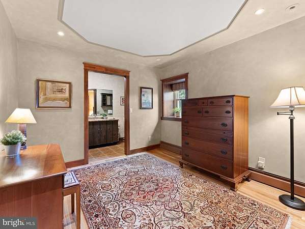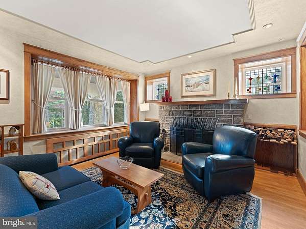 Come to tour this exquisite Craftsman style home. The architecture celebrates handcrafted millwork throughout, natural materials: cherry, oak, pecan wood trim throughout and a harmonious blend of form, function, timeless aesthetic and enduring quality. custom cabinetry, warming fireplace, well designed spaces for family bonding as well as entertaining, richly detailed in its aesthetic beauty. This high quality home offers, hardwood floors, oak staircase, bead board ceilings, pocket doors, custom designed stained glass windows accenting the stone fireplace. Granite counters in the kitchen and baths. The incredible covered front porch is a lovely spot to enjoy the front mature landscaping and bird watch. Enter into the beautiful living room and dining room offering a harmonious blend of form and function. Opposite the living room is a sunny office with cherry wood pocket doors and custom shelving. Continue to the rear of the house to a hallway with floor to ceiling storage cabinetry. Main level bedroom, full bath with tile flooring and shower, main level laundry room with a sink and two windows. Continue to the breakfast room with a lovely view of the rear patio, flowing into the kitchen table nook and gorgeous kitchen with custom cherry cabinets, deep drawers, coffee station, double sink, garbage disposal, granite counter with a marble slab, gas range with double ovens, microwave and exit door to the large corner deck, decking replaced & stained 2024, with wide stairs to the rear driveway, two car garage and a private patio area. Walk up the beautiful oak staircase to the owner's suite with built in bookshelves, a dressing room, walk in closet and a full bath with a large, tiled walk-in shower. A third and fourth bedroom both offers built in bookshelves and walk in closet, a hall bath with two sinks and tile tub surround. The basement has a stone foundation, bilco exit doors, french drain, windows, workshop area with work bench, darkroom with sink. Exterior freshly painted, Refrigerator, range and dishwasher 2 years new. Walking distance to the Roosevelt Community Center library with programs for children, popular Wayside Market eatery. Short drive Media Borough for restaurants and shops, Linvilla Farm, commuter train to Philadelphia. *Professional photos to come. *Showings begin November 7th.