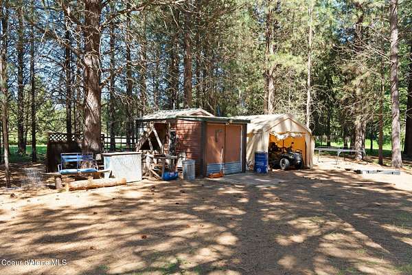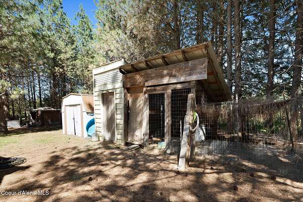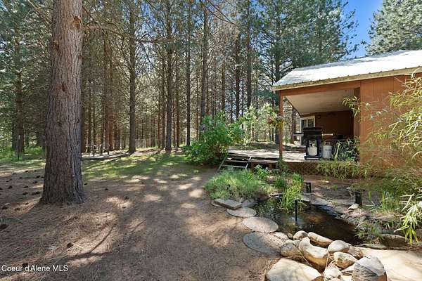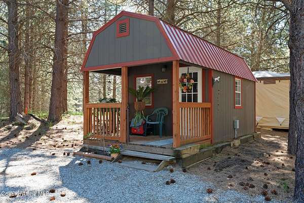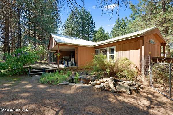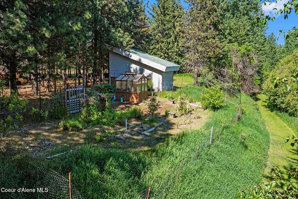 Nestled in the forest bordering year round Milk Creek on 4.5 beautiful acres is your next home in the country. The spacious 2 bedroom 2 bathroom house is your base camp for all the nearby recreational activities. Numerous outbuildings adorn the property including a cozy cabin with a loft, electric and Fiber Optic internet. With a horse barn, chicken coop, greenhouse and fenced gardens, the possibilities are unlimited. Relax on the coved front porch or BBQ on the coved back deck. Gentle rolling topography and a maintained trail system allow for usage of the entire property. Enjoy the convenience of this location, 10 miles North of Sandpoint accessed from a county maintained paved road.