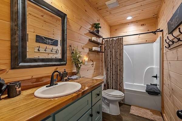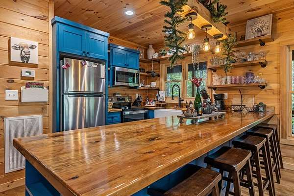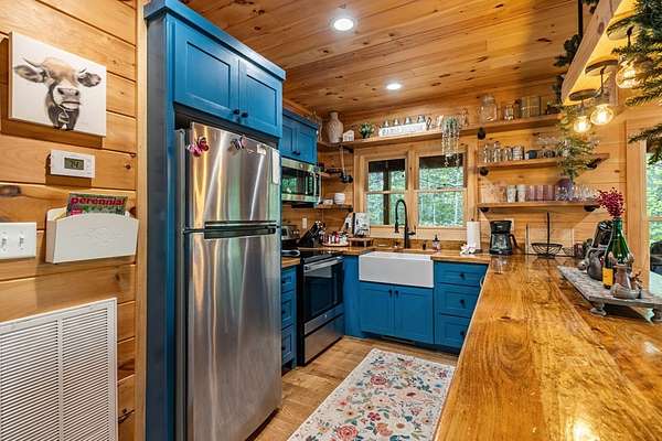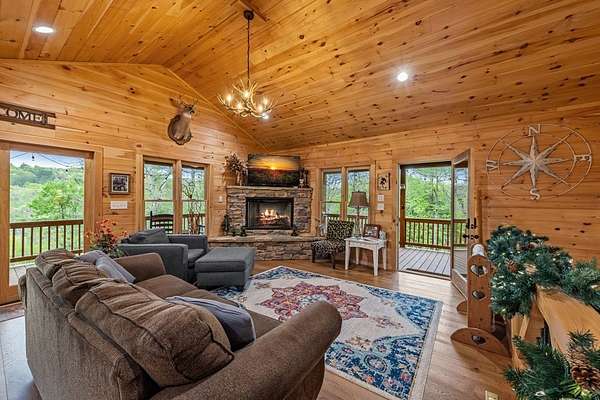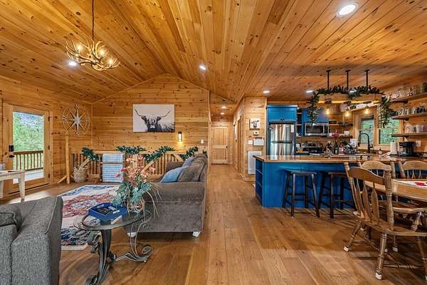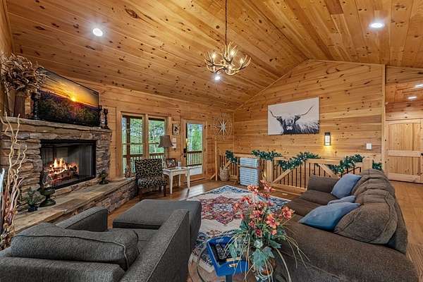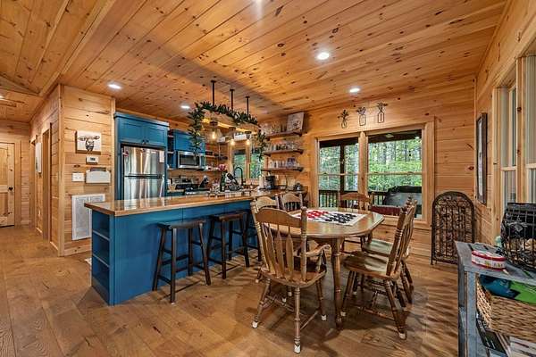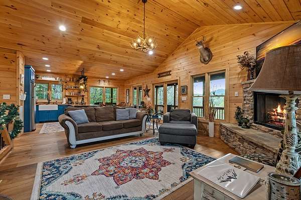Welcome to State Line Lodge where country chic meets mountain rustic, and all of your mountain dreams come true! Centrally located between the highly desired mountain towns of Blue Ridge & McCaysville, GA, and Murphy, NC, this lovely retreat offers easy access from major traveling routes making it a fantastic full-time home, home away from home, or investment to add to your portfolio. Outdoors you'll appreciate the gentle mostly wooded terrain for exploring a little over 2 acres, plenty of parking, a wraparound deck on the main level that overlooks the year-round mountain view, an abundance of room for relaxing & entertaining, the fire pit, and the patio on the terrace level with extra space to enjoy the great outdoors. The end of road privacy is fantastic! Moving indoors, this charmer offers three bedrooms and three bathrooms with two levels of living. The wood interior & abundance of natural light create quite the cozy atmosphere! On the main level you'll find the open kitchen, living room, and dining space complete with a gas log fireplace all overlooking the view, as well as the laundry closet, full bathroom, bedroom, primary bedroom & bath, and steps leading to the terrace level. Moving downstairs to the headquarters of entertainment, you'll find a fun-filled space with ping pong & arcade games, the 3rd bedroom, full bathroom, & the billiard room with the perfect space to settle in for a good movie or sporting event! You will never lack for things to do with the abundance of entertainment at the cabin, as well as with all of the amenities nearby from shopping & dining to Harrah's Casino, natural amenities galore - Lake Blue Ridge, Nottely Lake, the Toccoa/Ocoee River, hiking & biking trails; the list goes on! This dreamy retreat is currently used as a short-term rental, and most furnishings, decor, accessories and hot tub are available to be purchased. What are you waiting for? Let's make it your own!