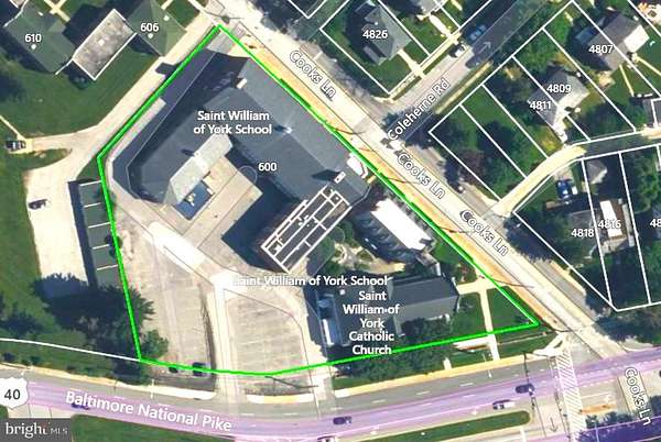 St William of York is a religious and educational facility comprising five separate sections: a one-story 3,512 SF sanctuary, with seating for +/-200, built 1914; a two-story 3,693 SF rectory; a three-story 6,812 SF parish center (originally a convent), built 1947; a two-story 22,307 SF school, built 1947; and a one-story 3,836 SF gymnasium and kitchen, built 1951. This +/-40,160 SF complex is allowed by zoning to operate as a primary and secondary education facility. The property is also ideal for a religious buyer who desires to incorporate a school and/or childcare in its ministry. The two-level school wing, built in 1947, includes nine sunny classrooms, a gym, and kitchen. The parish center can be adapted for additional classrooms, meeting rooms, administrative offices, and reception area. The rectory can also be adapted for offices, classrooms, or additional spaces for ministry. The sanctuary, which seats under 200, can be used for worship, or could be adapted for use as an auditorium or large multipurpose room. The church has recently closed, and parts of the school are currently under a short-term lease.Overall, the building is in average condition and could be improved with some cosmetic updates and the installation of central air. Located on the busy corner of Edmondson Ave and Cooks Ln, the +/-1.69-acre property boasts +/-382 feet and +/-405 feet of frontage, with 33,702 vehicles per day on Route 40/Edmondson Ave (2024 SHA). There are +/-65 paved parking spaces. HVAC is gas-fired boiler heat and a small percentage of the property with central A/C and window units. The roofing is a combination of pitched slate, asphalt, and flat rubber membrane (may be a leak in school roof). Flooring is largely terrazzo, with some wood and carpeting. The property is inventoried with MHIP as B-5100. Not available for lease or lease-to-own. The seller will remove religious items (sacred goods) from the property before sale, including sanctuary windows. The property will be sold as is, where is. Tours are available with registration and qualification: name, address, mortgage pre-qualification letter, and bank statement demonstrating funds available for deposit and closing. More photos coming Aug 31.