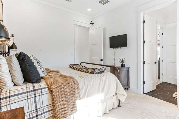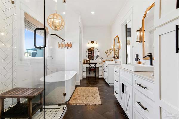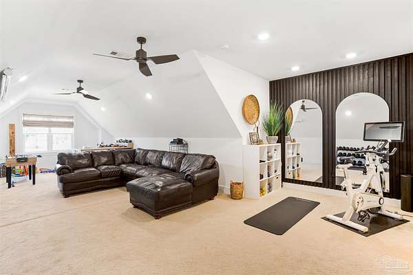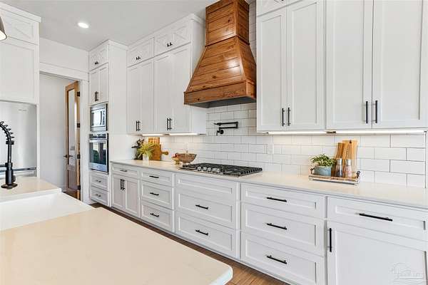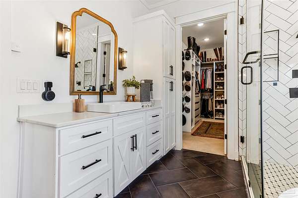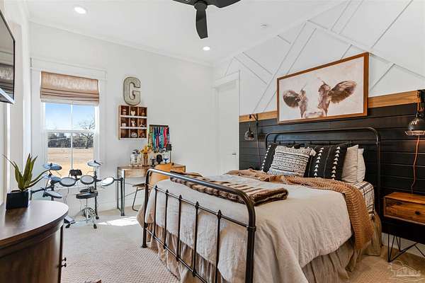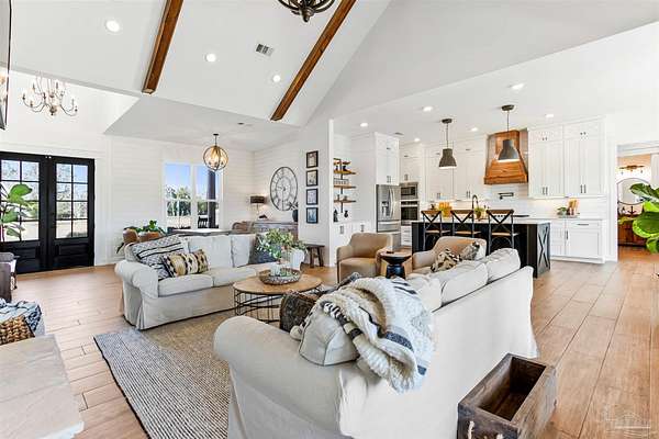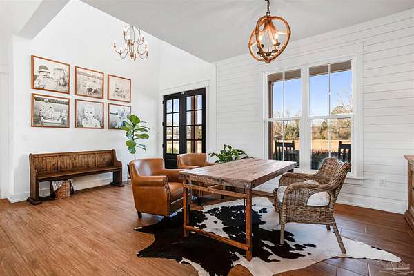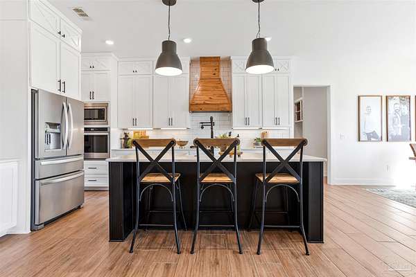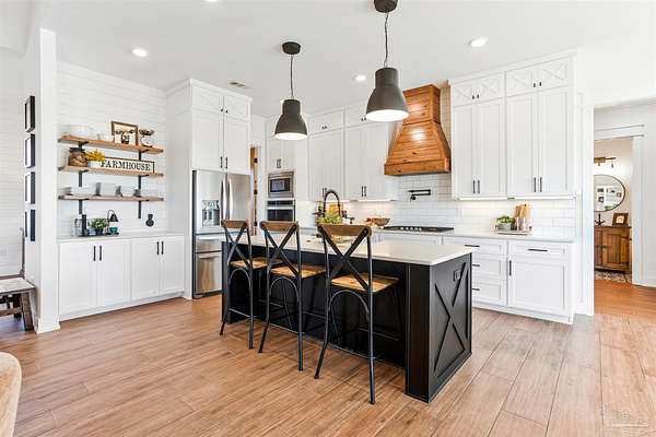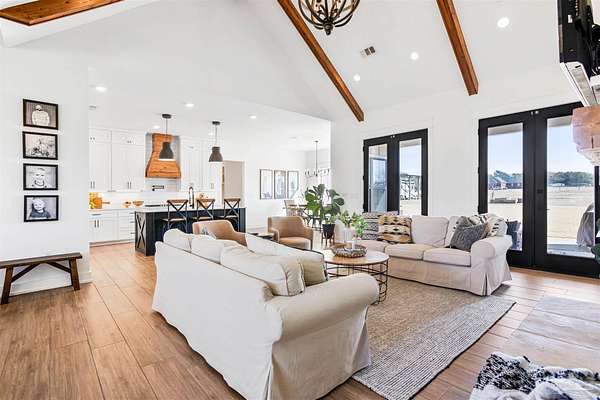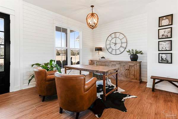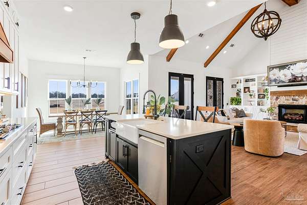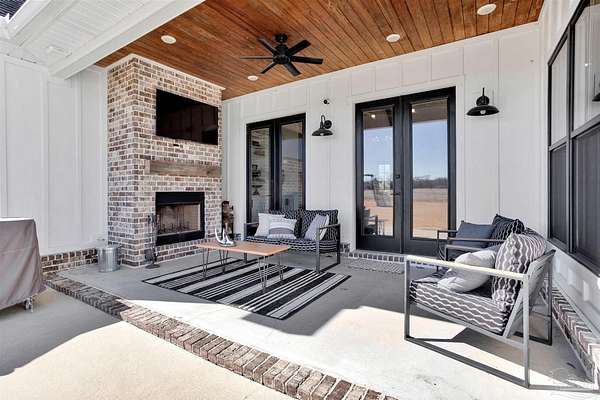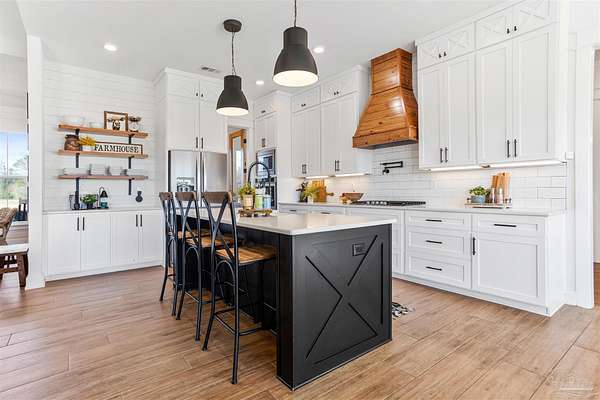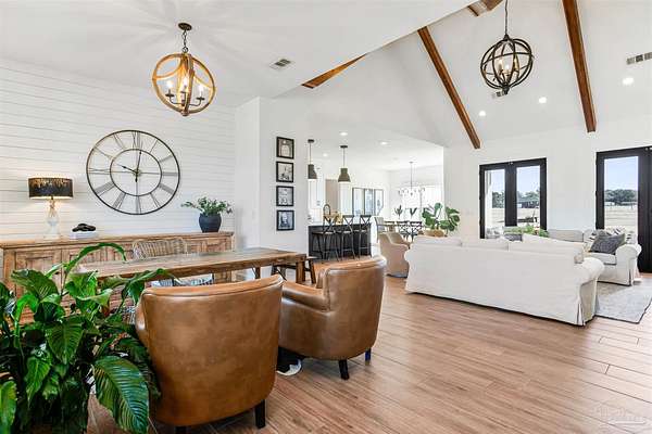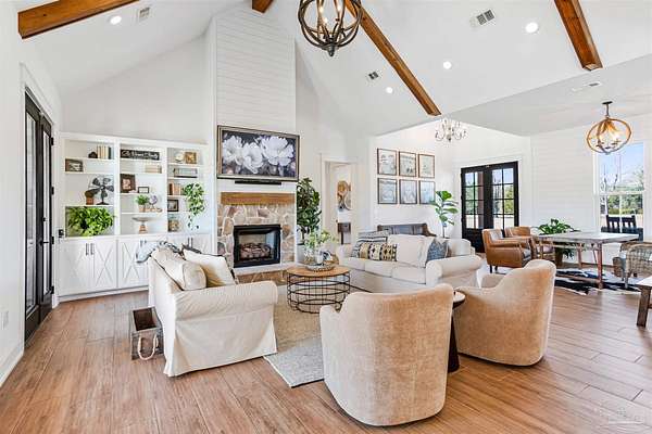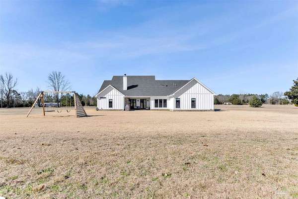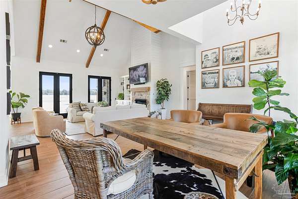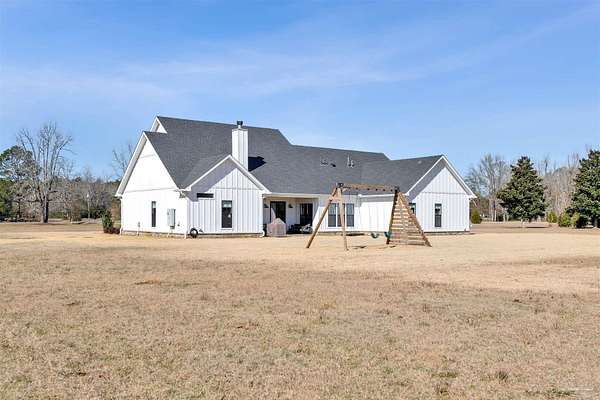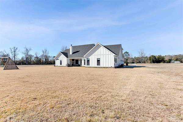 Welcome to a truly exceptional, custom-built farmhouse, set on 4.5 private acres with no HOA-offering the space, privacy, and flexibility to live beautifully, both indoors and out. Freshly painted and thoughtfully finished, this 3,426-square-foot home features 4 bedrooms and 3.5 baths with elevated selections throughout, including wood-look tile flooring, roller shades, and spray-foam insulation for year-round comfort and efficiency. The open-concept main living area is designed for effortless entertaining, while still providing the separation and quiet spaces a home of this caliber deserves. The oversized 3-car garage is complemented by a generous bonus room above-ideal for a home office, media lounge, playroom, or guest suite. Walking attic space adds convenient, accessible storage rarely found in newer construction. Outdoors, the setting is as refined as it is functional. Enjoy evenings by the outdoor fireplace, cultivate your own harvest in the raised garden beds, and appreciate the lush zoysia lawn supported by a full irrigation system across the front and side yards. A premier feature of the property is the 40x48 pole barn, with 24x40 fully enclosed and equipped with power and water-perfect for a workshop, equipment storage, hobbies, or future expansion. Dedicated RV parking with electrical hookup adds even more versatility for travelers and guests alike. This is a rare offering where craftsmanship, acreage, and lifestyle amenities meet-delivering polished country living with the freedom to make it your own.