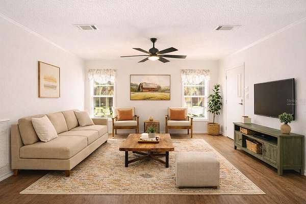 - Ceiling Fans(s), Crown Molding, Eat-In Kitchen, Kitchen/Family Room Combo, Open Floorplan, Window Treatments