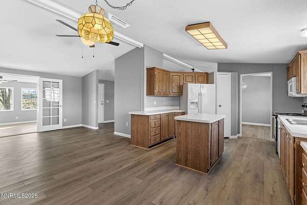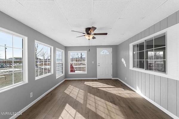 Room to spread out and enjoy Northern Nevada living. Situated on approximately 2.2 fully fenced acres in Silver Springs, this property offers space, functionality, and convenient access to work, recreation, and daily amenities. With traffic-free access to the Tahoe Reno Industrial Center, nearby recreation at Lake Lahontan, and shopping and services in both Dayton and Fernley, the location provides an ideal balance of rural living and regional connectivity. Significant improvements were completed in 2025/2026, including a new roof on both the home and detached garage, a deepened well, fresh exterior paint, new luxury vinyl plank flooring, extensive foundation and under-home repairs with new vapor barrier and skirting, along with a new stove and dishwasher. The interior offers generous living areas plus an approximately 360 sq ft enclosed porch that has been used as a large foyer and bonus room. This versatile space could function as a bedroom, office, hobby room, or additional living area. County records show the space on original plans but do not include it in the recorded living square footage. Buyer to verify. Outside, the property is well suited for animals and rural lifestyles with a corral area and a small outbuilding currently used as a whelping shed with two feeders installed. Four yard hydrants are positioned around the property, along with two storage sheds, full perimeter fencing, and an additional fenced backyard directly off the home. A detached two-car garage includes an approximately 364 sq ft of shop space with a window A/C unit, providing excellent room for projects, equipment, or workshop use. RV parking with electrical hookup is also available. The local schools, airport, and access to USA Parkway are approximately five minutes away. Escrow has been pre-opened. Seller requests a minimum of 48 hours to review offers. Listing agent is related to the seller.