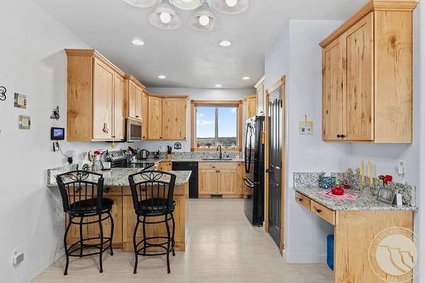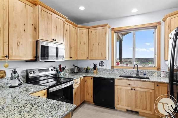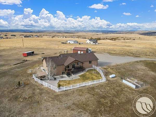 Horse property on 9.378 acres just minutes from downtown Billings and West End amenities! This 3,120 sq ft ranch-style home with walk-out basement offers the perfect blend of country living, usable acreage, and comfort. Set up for animals with three fenced pastures with electric top wire, the property also features a large irrigated yard with underground sprinklers, covered deck, and multi-level patio with hot tub hookups. Inside, you'll find fresh interior and exterior paint, new LVP flooring on the main level and in one basement bedroom, granite countertops, new range/oven, new microwave, and newer dishwasher and refrigerator. The main level includes the primary suite, second bedroom, and office. The basement offers a large family room, two additional bedrooms, and excellent storage. Includes a 21x36 shop and plenty of room to enjoy the views and wide-open space.