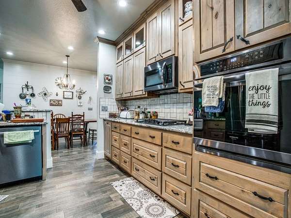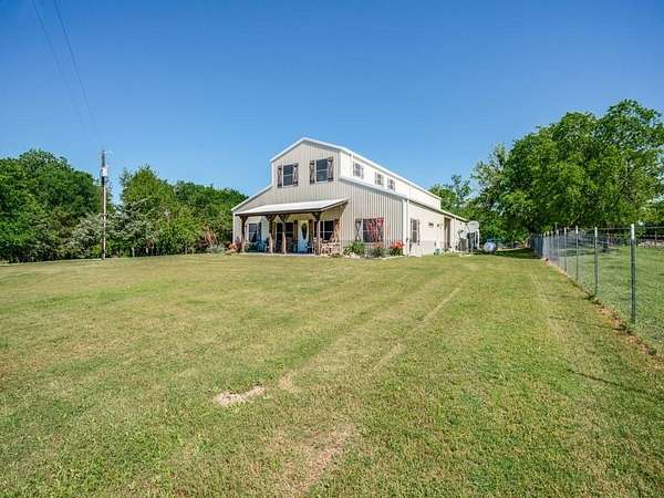 Great opportunity to own a barndominium on acreage in Melissa! This is a rare find in Collin County. SO many amenities at your finger tips. 5900 SF residence with main house, secondary living space, shop, and storage all under one roof. Meticulously built with all the beautiful additions you could dream of. The main home is a 2 bedroom, 2 bath, open concept living space with beautiful hardwood floors, gorgeous trim, and the ceiling in the living area is to die for. The secondary home is great for mother-in-law suite featuring open concept as well, with 2 bedrooms, full bath, and separate utility room. And just wait until you see the stairway entry to the secondary home. Individually cut cedar lines the stairwell to the secondary home and huge storage area. The shop area is anyone's dream! So well planned with great storage and more than enough space for any hobby or work. Come take a look, you'll be impressed!