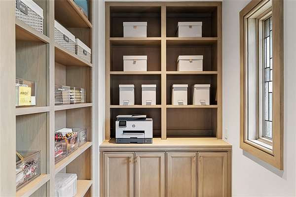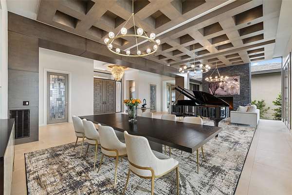 - Bar, Beamed Ceilings, Bookcases, Breakfast Bar, Built-In Features, Ceiling Fan(s), Ceiling-High, Chandelier, Coffered Ceiling(s), Double Vanity, Eat-In Kitchen, Entrance Foyer, High Speed Internet, Interior Steps, Kitchen Island, Multiple Dining Areas, Multiple Living Areas, Natural Woodwork, Open Floorplan, Primary Bedroom On Main, Quartz Counters, Recessed Lighting, Smart Thermostat, Soaking Tub, Sound System, Two Primary Baths, Two Primary Suties, Walk-In Closet(s), Wet Bar, Wired For Sound