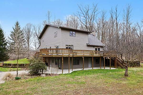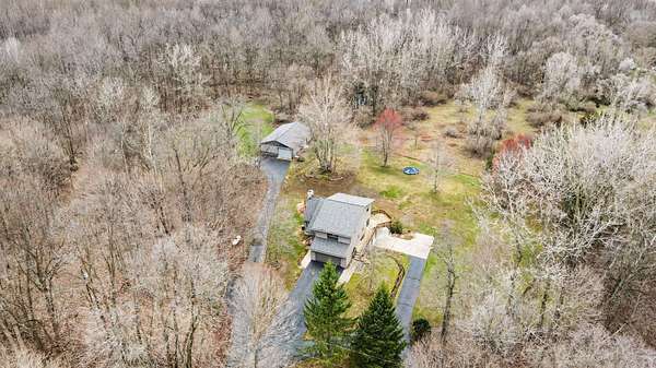 Custom built 5 bedroom 4 full bath home with over 3,500 square feet of living space sitting on 37.8 wooded acres! 3 of the bedrooms are upstairs along with 2 full baths. Main floor is made up of all of your daily living space along with laundry and a full bath. lower level walkout has a secondary living space with 1,200 square foot that has a living room, full kitchen, 2 bedrooms and a full bath. Out side you have a large deck for entertaining, a 48 foot by 32 foot pole barn with 10 foot overhead door a large storage area and 2 work rooms. Lower level has a driveway down to the apartment. Call Jeffrey A Penick with any questions.