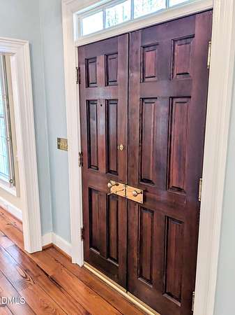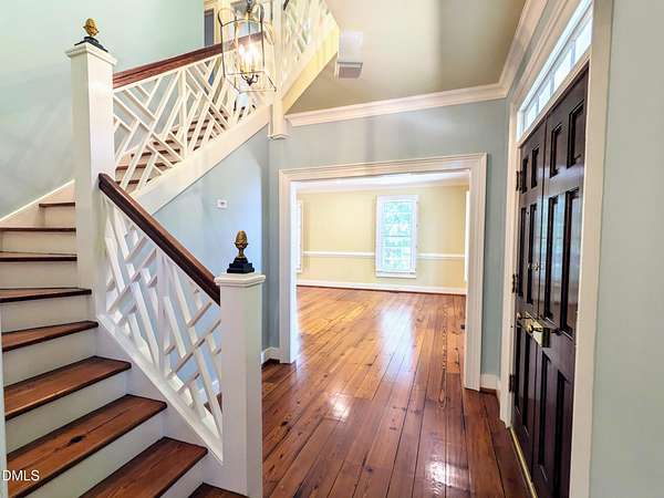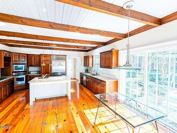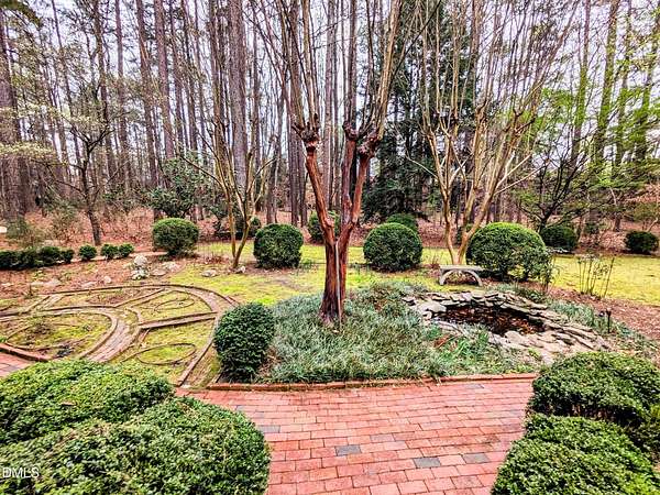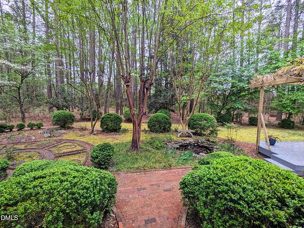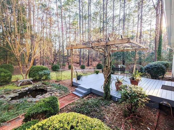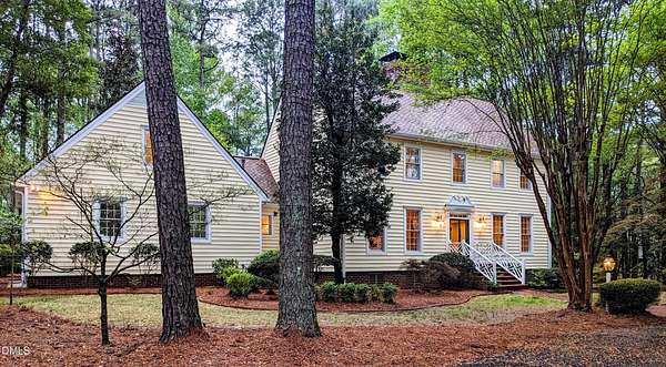Rare 1.56-acre corner lot in the heart of Northwest Raleigh--privacy rarely found this close to the city. Colonial Saltbox-style custom-built home featuring heart pine floors, a Sub-Zero kitchen, extensive upgrades, and utilities located at the street. 4-bedroom home on a beautifully landscaped, private corner lot in the established Stoneridge subdivision--offering a unique blend of estate-style privacy and urban convenience just minutes from Rex Hospital, Umstead State Park, Olde Raleigh Village, Crabtree Valley Mall, Downtown Raleigh, and Lenovo Center. Located within the Umstead Park overlay and outside Raleigh city limits (no city taxes), this property offers added privacy with well and septic. Public water and sewer utilities are located at the street. Inside, the home showcases quality craftsmanship with 9-foot ceilings, custom moldings, and stunning reclaimed century-old heart pine floors throughout the main level. The spacious kitchen is designed for everyday living and entertaining, featuring granite countertops, double ovens, dual sink configuration, a built-in Sub-Zero refrigerator, and a bright eat-in gathering area overlooking the wooded backyard. Additional features include plantation shutters throughout most of the home, custom built-ins, central vacuum system, whole-house water filtration and softener, and a distinctive custom copper chimney that adds a unique architectural focal point. The generous primary suite and well-sized secondary bedrooms provide comfortable living, while a bonus/media room over the garage and a detached workshop offer flexible space for hobbies, storage, or work. Recent improvements include CertainTeed Presidential Shake roof (2016, transferable warranty), LeafFilter gutter protection system (2024), new garage doors (2025), water softener (2023), and recent foundation improvements. Enjoy outdoor living on the tiered deck surrounded by mature trees and natural privacy. Additional highlights include a side-load 2-car garage and circular driveway. No HOA. Top-rated Wake County schools. A rare chance to own a large, private lot in one of Raleigh's most desirable locations.