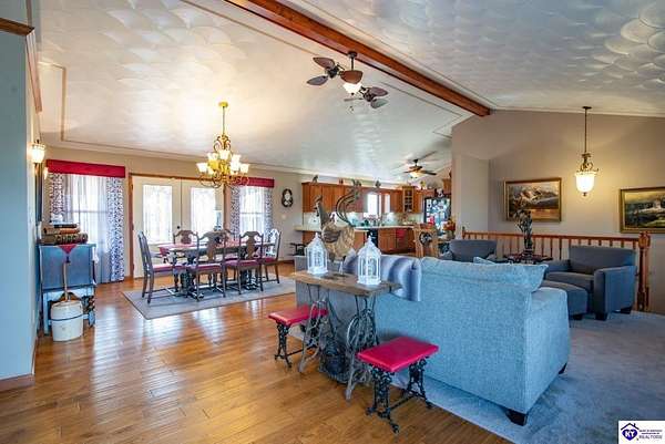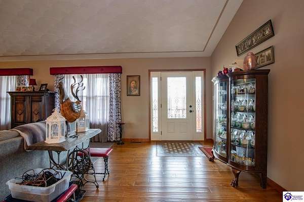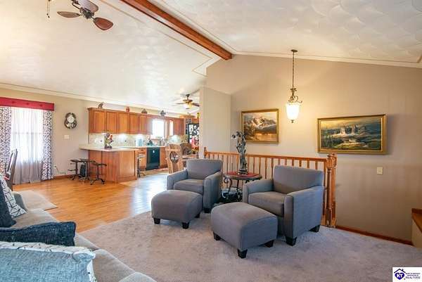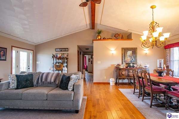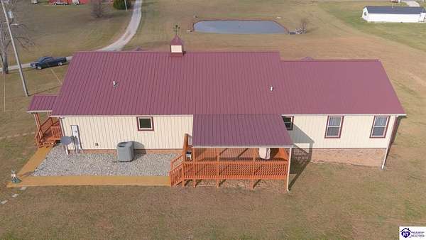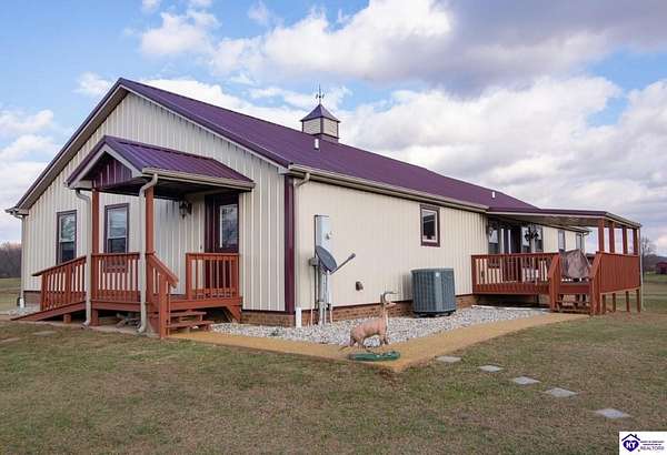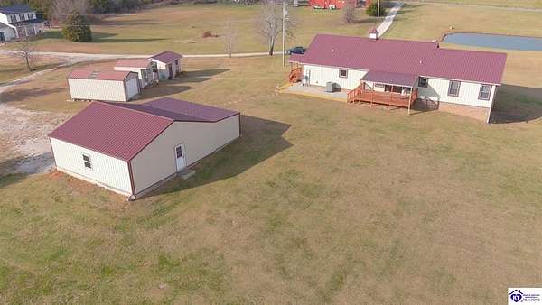 Location!!! This very well maintained ranch home is located under 15 minutes to Blue Oval Battery Park in Glendale. One owner home that has been exceptionally cared for. When you walk inside you will immediately notice the pride in ownership. The house has been immaculately kept and appears like new. Featuring 4bedrooms, 3 full bathrooms and an open floor plan. Utility room, primary bedroom and primary bathroom are all on the main level. Downstairs in the finished walkout basement you will also find a bonus room, family room with a beautiful fireplace, 4th bedroom, a game room and lots of ample storage. Outside is an absolute dream. 2 car attached garage, detached 2 bay workshop with electricity boasting loads of opportunity, shed with a block foundation, a pond with fish, a beautiful solar powered fountain, 4.848 acres of land, covered front porch and a covered back porch. So many beautiful places to sit and drink your morning coffee in peace and tranquility with an amazing country view, yet only seconds to i65. Call your realtor today for a tour.
