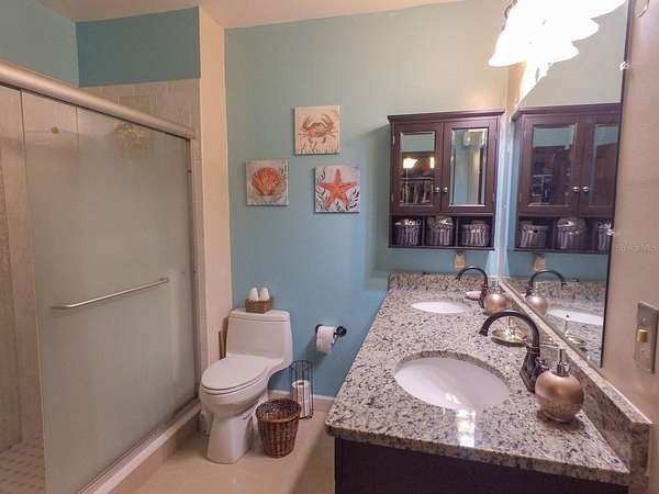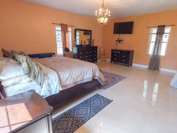 Step inside to porcelain tile flooring throughout, accentuating the home's Spanish-inspired hardware, accents, and lighting. The downstairs master suite is a true retreat, featuring a spacious sitting/reading area, a walk-in closet, and a luxurious en-suite bathroom. A second master suite upstairs provides additional privacy and comfort.
