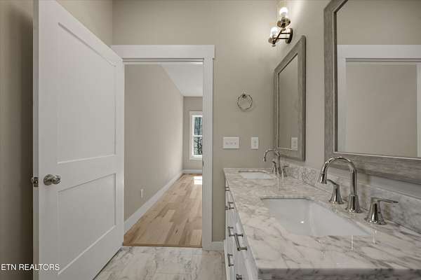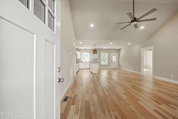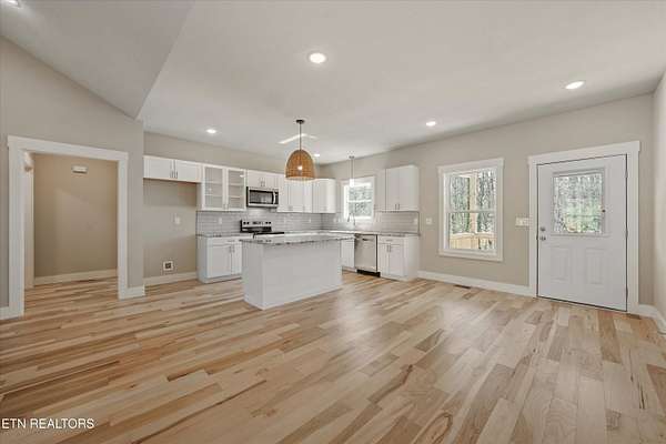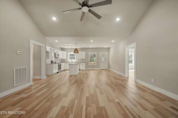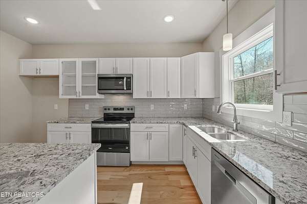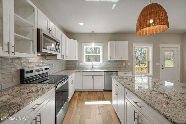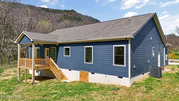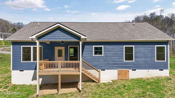 Brand new one-level home situated on over 1.5 acres, offering peaceful country living with seasonal mountain views and county taxes only. Enjoy your morning coffee on the inviting front porch while taking in views of House Mountain and the quiet beauty of the surrounding landscape. The property is professionally landscaped with river rock and low-maintenance shrubs, providing great curb appeal with minimal upkeep. Inside, this thoughtfully designed split floor plan features beautiful hardwood flooring throughout the main living areas and an abundance of natural light. Step into the inviting open-concept layout that's perfect for both everyday living and entertaining. The kitchen is a true centerpiece with stainless steel appliances, polished granite countertops, and soft-close cabinetry. The spacious primary suite features dual vanities with marble countertops, a stunning custom walk-in tiled shower with a glass enclosure, and an oversized walk-in closet. Both bathrooms feature durable LVP tile flooring and marble countertops, offering a stylish and low-maintenance finish. Step outside and unwind on the back deck with your favorite book or a glass of wine while enjoying the peaceful setting. Conveniently located approximately 25-30 minutes from Downtown Knoxville and about 35-40 minutes to the Sevierville exit (I-40 Exit 407), providing easy access to Pigeon Forge, Gatlinburg, and the Smoky Mountains. Enjoy the peaceful setting of Corryton while still being within a comfortable drive to shopping, dining, entertainment, and major travel routes. Don't miss your opportunity to call this beautiful new home yours!