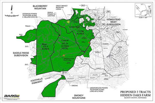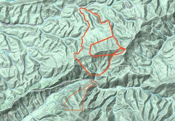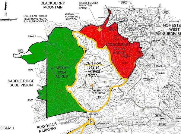 342 beautiful private acres located across from Blackberry Mountain Resort with all the best features the Smoky Mountains have to offer. Over 100 acres of rolling terrain. 1/2 mile of ridgetop with 360-degree panoramic views from the grand observation deck that offers spectacular views of the Smoky Mountains looking south and closeup views of the Blackberry Resort/Three Sister's Mountain to the north. Miles of wide gravel roads are installed throughout pristine old-growth hardwood forest. Perfect peace, privacy and serenity with no subdivision or deed restrictions to spoil the enjoyment of your property. This property includes road frontage on the new section of the Foothills Parkway with a beautiful waterfall. Numerous large, cleared areas with abundant wildlife throughout. Road frontage on E Millers Cove Road on the north side and Long Rifle Road on the south side. Two large storage buildings with power and implement sheds in place. Wide manicured trails are installed all throughout the property. This property is zoned R-2 low density residential, which allows construction of one dwelling of any size for every five acres of land. Overnight cabin/chalet rentals are permitted. No commercial ventures will be approved as per Blount County development services... A once-in-a-lifetime property magnificently isolated for a measure of privacy that you'll truly appreciate. Only 8 miles to Pigeon Forge, 12 miles to Maryville, only 18 miles away from Knoxville's McGee Tyson Airport and bordering the splendor of the Great Smoky Mountains National Park. Additional adjoining acreage and subdivision lots that are ready to build on are available. A total of 25 parcels, 916 acres, is available. This parcel is known as the Central section on maps provided. A 7-bedroom lodge with 174 acres is also for sale- see 2050 E Millers Cove Rd Walland. Guided tours are provided to qualified buyers. Access by appointment only. Some photos were taken with a drone.
