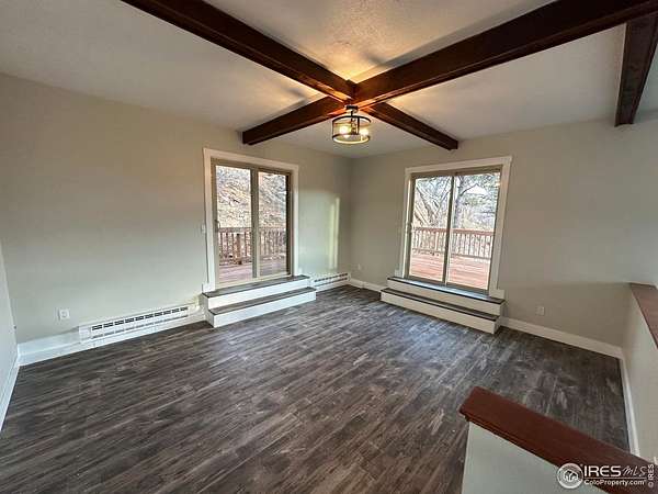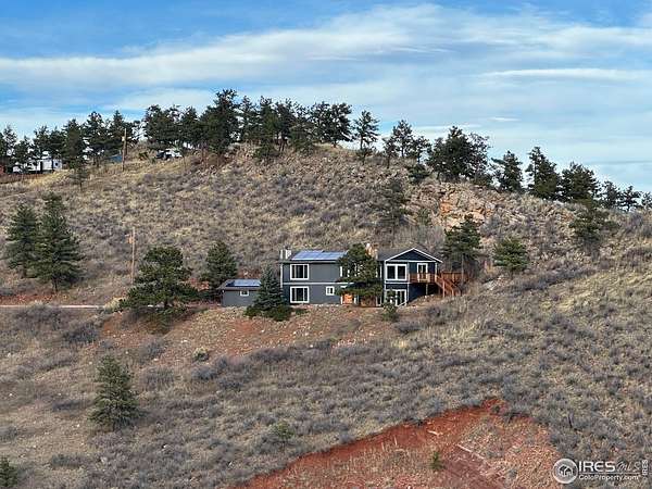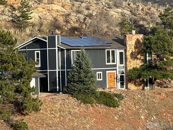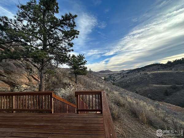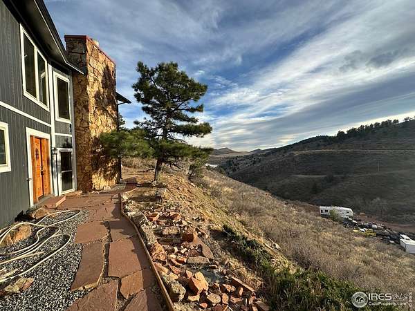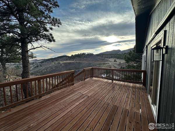 Panoramic scenery from your own hillside haven! Soak in more than two acres of Colorado living with panoramic views over Horsetooth Reservoir and the mountains. The impressive two-story home is crafted with quality finishes from top to bottom, featuring 4 bedrooms and 3 baths, plus plenty of room to relax, gather, and enjoy every corner. The bright and open living area boasts a floor-to-ceiling stonework that frames the central fireplace, while picture windows line the room, pulling in natural light and showcasing the stunning landscape outside. Cook with ease in the kitchen designed with granite countertops, ample cabinetry, and generous prep space that make it simple to stay organized, while still enjoying a warm, inviting atmosphere. Two bedrooms sit on the main floor, including one with its own private access to the shared full bathroom, offering comfortable privacy and convenient layout options. The upper level features a versatile loft area plus two more bedrooms, including the impressive primary suite with its own fireplace, walk-in closet, and spa-like ensuite bath. Both upstairs bedrooms and the loft open directly to the wraparound deck, offering countless places to unwind, sip morning coffee, and soak up the views. A charming brick patio offers another space to relax, grill, or unwind, while a 2-car garage keeps your vehicles and gear protected year-round. The property also includes solar panels for added energy savings. Enjoy close proximity to Horsetooth's South Bay for boating, hiking, fishing, and more, all while having easy access to the amenities of Fort Collins.