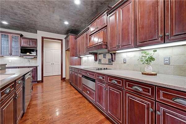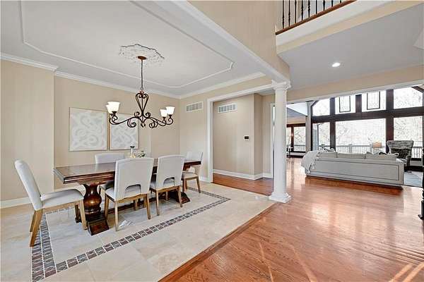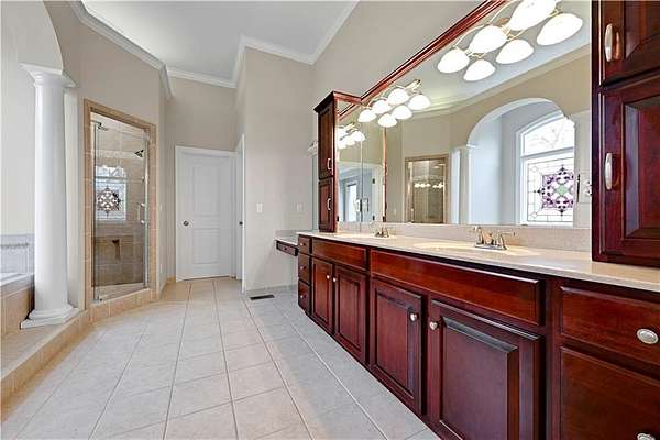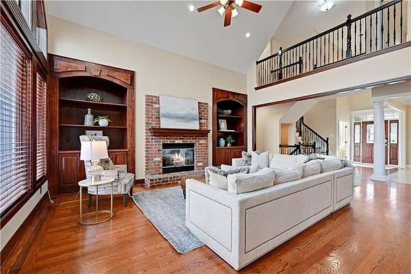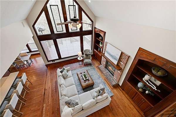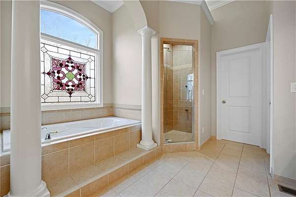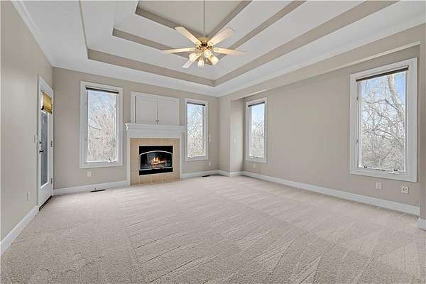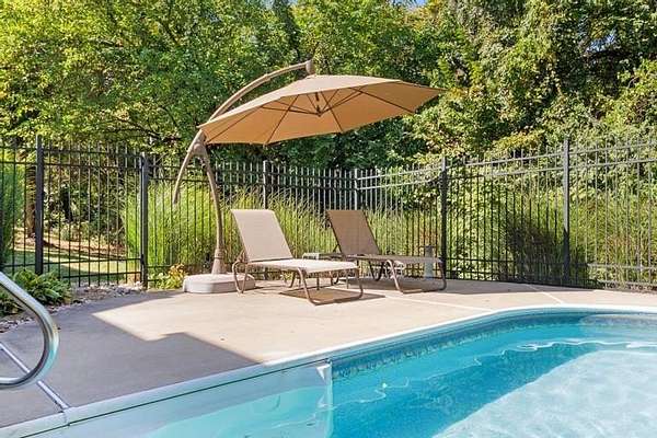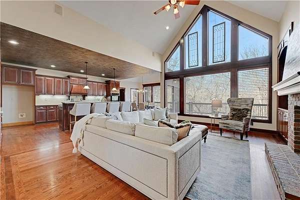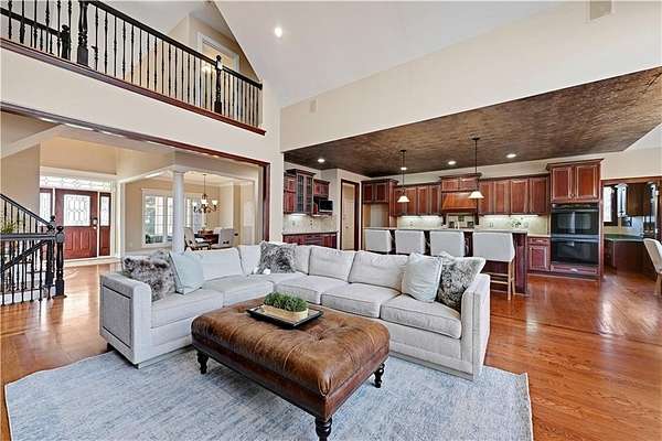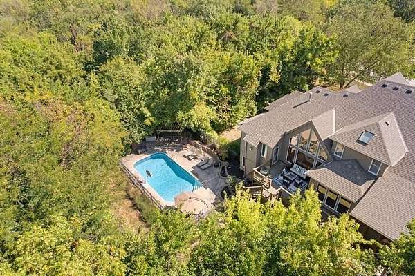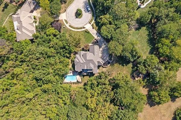 Rare opportunity in Belle Meade Farms, Shawnee's best-kept secret! This beautifully decorated 1.5-story home offers 6 bedrooms, 5 full baths, and 1 half bath, perfectly situated on a quiet cul-de-sac with 2 acres of wooded privacy, creating a true private oasis. The open kitchen flows seamlessly into the great room, ideal for entertaining and everyday living. Large secondary bedrooms throughout the home provide exceptional space and comfort. The cozy primary suite features a private fireplace and a spa-like bathroom with heated tile floors, Jacuzzi tub, and separate his-and-her closets. The main level also includes a private office and a first floor bonus bedroom, perfect for a nanny, guest suite, or mother-in-law quarters. Step outside to enjoy the gorgeous pool and serene outdoor setting, ideal for relaxing or entertaining. The finished basement features a large recreation room with wet bar and fireplace, plus a bonus room ideal for a pool table, exercise room, or hobby space. Main floor & upstairs laundry hookups. Recent updates include brand-new carpet and fresh interior paint throughout. A truly exceptional home offering space, luxury, and privacy in a coveted location. --
