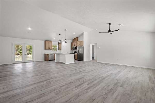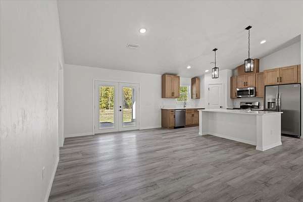 NEW CONSTRUCTION just completed and ready for you to move in! This lovely 3 bedroom, 2 bathroom, frame/hardiboard home rests on a mostly wooded, 5 ACRE property in HIDDEN OAKS S/D. Privacy is in abundance here! This open concept home has a roomy 1800 SF of living area and has many upgrades such as luxury vinyl plank flooring, quartz countertops, soft close doors & drawers, and stainless steel appliances! This comfortable kitchen has a large island with seating and a corner pantry and custom pendant lighting and warm wood cabinets help you feel right at home! Extra touches can be found all thru the home.. such as the wonderful closet organizer in the owner's walk-in closet and the custom tile walls in the shower and tub surrounds in both bathrooms. You will love that closets were added where you always need them! Enjoy the outdoors from either the covered porch on the front of the home, or from the large covered porch out back accessed through french doors. Either one allows for nice views of wooded, serene property with an occasional deer! The well constructed home has energy efficient, spray foam insulation and low-E windows. Fiber optic internet is available here! Located just north of Bell, this home sits in a quaint subdivision on a wooded lot on a PAVED ROAD! No HOA and light deed restrictions! Easy commute to High Springs and Alachua and only 3 miles to the historic Suwannee River, Rock Bluff General Store, and Rock Bluff Springs! Come enjoy low property taxes and "A" rated schools. The countryside's peace and quiet is calling! Inquire today for more details and the opportunity to see such a well built home ready for you and your family!