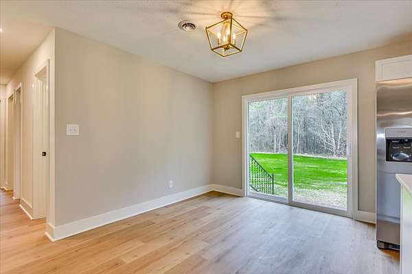 Welcome to this beautifully renovated brick ranch, perfectly situated on a nearly 5 acre lot that offers both privacy and room to breathe. A covered front porch invites you inside, where you're greeted by wide-open living spaces bathed in natural light. The spacious family room features luxury vinyl plank flooring flowing seamlessly throughout the entire home. At the heart of the home lies a gorgeous chef's kitchen boasting all-new cabinetry, stainless steel appliances, gleaming quartz countertops, a generous bar with seating, and a sunlit breakfast area overlooking the large backyard. This thoughtfully designed home offers four bedrooms, each with ample closet space. The primary and secondary baths have both been completely updated with designer finishes, including modern vanities, framed mirrors, stylish fixtures, and sophisticated tilework. Additional features include a new roof, new windows, new plumbing, new vinyl siding, new interior and exterior doors, garage, ample parking space & so much more.
