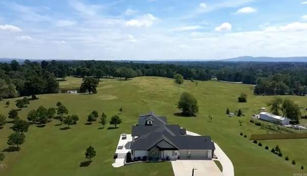 Dual-Home Private Estate on 6.8 Acres! Just 10 minutes from town, this rare property includes two full homes totaling 6 beds, 5.5 baths, and 5,311 sq ft. The main 3,349 sq ft residence features an open floor plan, 3-car garage, office, and 3 ensuite bedrooms. The primary suite includes a soaking tub, oversized walk-in shower, and a large closet that doubles as a reinforced storm shelter. The chef's kitchen has a double oven, high-end appliances, a large island with quartz waterfall countertops, and abundant counter space with custom cabinets. Expansive laundry room with extra storage, family room with 18-foot cathedral ceilings and rustic wood beams, and a private elegant office with 12-foot ceilings and built-in shelving. The 1,962 sq ft guest home offers private parking and entrance, 3 beds, 2 baths, laundry, and a spacious loft with stunning Ouachita Mountain views--perfect for an office, library, or playroom. Outdoor amenities include a shared 1,200 sq ft concrete patio, a 370 sq ft workshop/shed, a 10x10 chicken coop with 16 nesting boxes, and a fully fenced 10x20 chicken run. This private retreat is ideal for luxury, multigenerational living!
