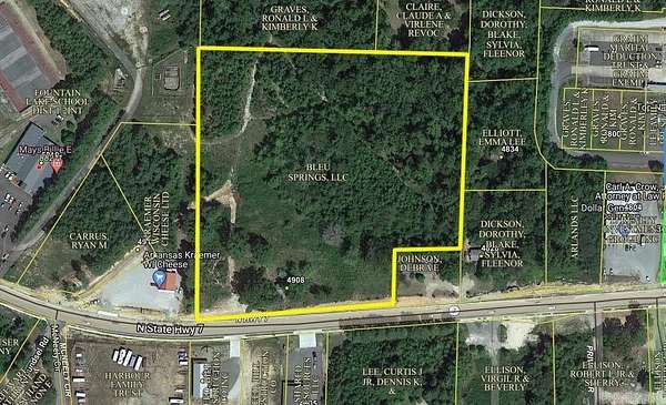 Est $3,373/moCommercial lot offering 8.5+- acres with 504 feet of frontage on Highway 7 North. The property features two commercial driveway cuts into curb and sidewalk. There is an old home on the proeprty that is uninhabitable and of no value. There is already water, electric and gas connections available on the property. Three phase power is available nearby. Only 0.4 miles north of main entrance to Hot Springs Village and 0.4 miles south of State Highway 192 intersection. Offers great visiability and access in both directions.
