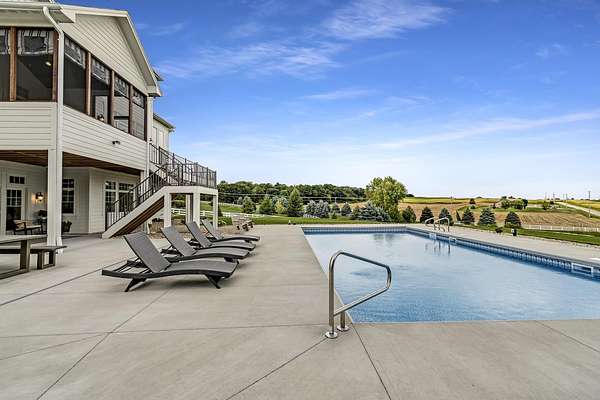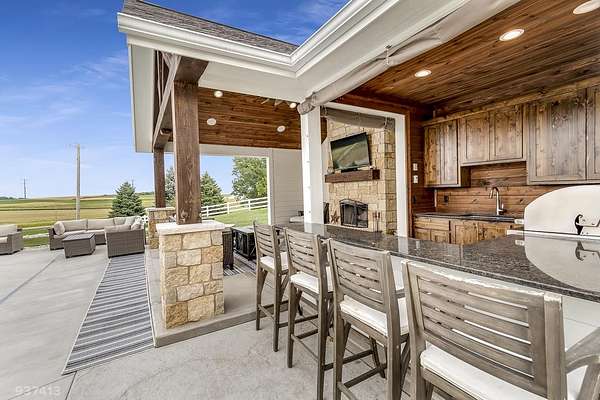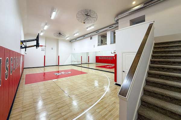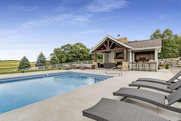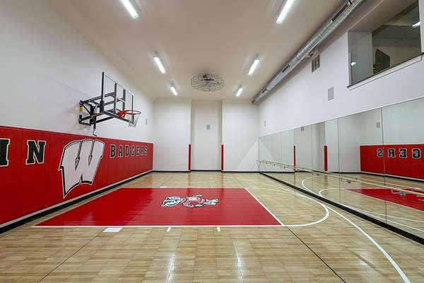 Delayed for updated photos. Experience executive lifestyle living at its finest in this stunning estate. Designed for comfort, connection, and sophistication, this home blends modern elegance with everyday ease. The open great room and chef's kitchen create a seamless space for gathering, while the main-level owner's suite offers a spa-style retreat with soaking tub and custom closet. Upstairs, a hidden executive office provides privacy and inspiration. The lower level is built for entertainment and wellness with a second kitchen, theater, game area, and indoor basketball court and gym. Step outside to your private oasis featuring a sparkling pool, expansive patio, outdoor fireplace, and gorgeous pool house with an outdoor kitchen. A home where luxury meets lifestyle--crafted for the execut