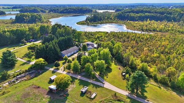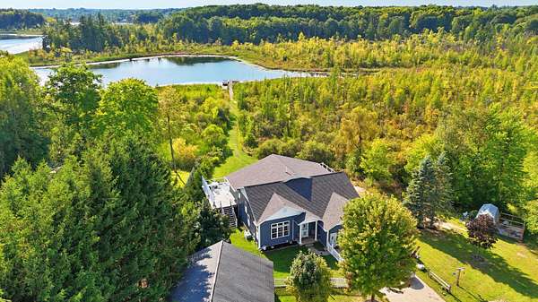 Experience the ultimate in waterfront living on this breathtaking 23.5 acre estate. Ideally situated near Grand Rapids and Rockford, this property offers unparalleled seclusion. The meticulously renovated and expanded residence boasts expansive spaces perfect for grand gatherings and entertaining or accommodating large families. Showcasing a stunning new kitchen and master suite with picturesque lake views. Additional features include dual laundry areas, newly constructed wrap-around composite decks, and an impressive pole barn with climate-controlled workspace. A spacious shop accommodates ample storage for recreational vehicles, while the fenced area and scenic entrance, complete with a wooden bridge over a serene pond, create a tranquil ambiance.