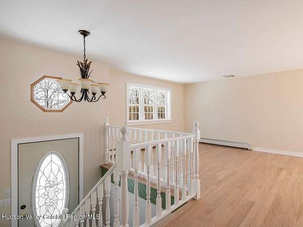 Beautifully remodeled raised ranch set on 4.7 picturesque acres in a prime Hudson Valley location! This move-in-ready home features brand-new subfloors and stunning solid hardwood flooring throughout, offering both quality craftsmanship and timeless appeal. Freshly painted from top to bottom, the interior feels bright, clean, and inviting. The main level offers comfortable living with an updated, brand-new bathroom and a seamless layout ideal for everyday living. Downstairs, the partially finished lower level expands your living space with egress windows and a walk-out, providing abundant natural light and flexible use for a family room, home office, or guest area. The lower level also includes a washer and dryer and is already plumbed for a convenient half bath, offering excellent potential for added value. outdoors enjoy the oversized deck overlooking the beautiful cleared yard with a storage shed and small barn. This property offers privacy, room to roam, and space for outdoor enjoyment. Ideally located near John Burroughs State Historic Site and conveniently positioned between Kingston, Highland, and New Paltz, you'll enjoy easy access to hiking, dining, shopping, and all the charm the Hudson Valley has to offer. A rare opportunity to own acreage, updates, and location all in one -- schedule your showing today!