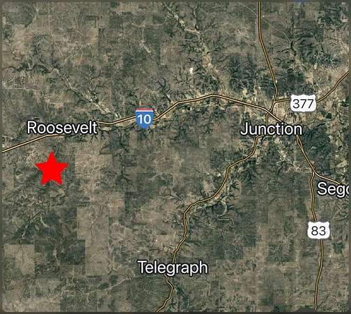 The ranch has sloping to rolling topography with good elevation changes. Maynard Creek traverses the property on the western portion, giving this ranch ample amount of ground water. Spring fed and with good water even in this draught. Photos taken on 8/31/24. The creek is located on the western edge of the property for livestock and wildlife. The property has low fencing on the west, south and most of north boundaries, with fencing on the far east boundary required. There is a very good water well with 250 gallon storage and power brought into the property(PEC) with RV hookup. The ranch retains its agriculture exemptions. The property shares boundaries with Little Paint 2 Hunting Ranch to the West and South. There is an abundance of wildlife seen on the property including dove, turkey, axis, trophy whitetail, aoudad, hogs, as well as varmints typical for the area. Seller is selling as whole and will not subdivide property nor owner finance. Please note address is approximate and please do not attempt to locate property or you will be trespassing. Listing agent must accompany!
