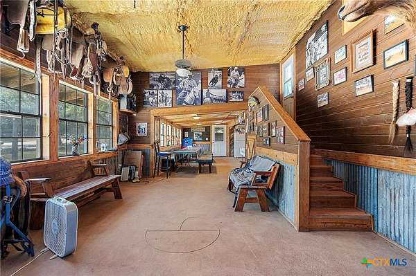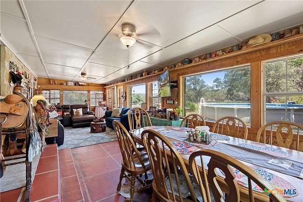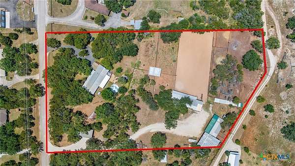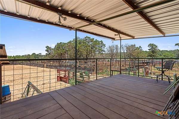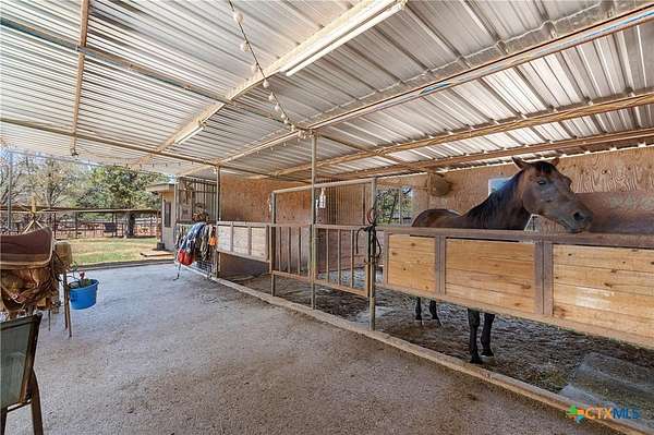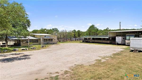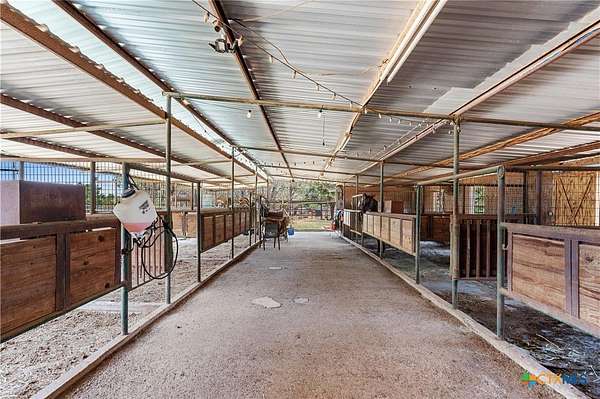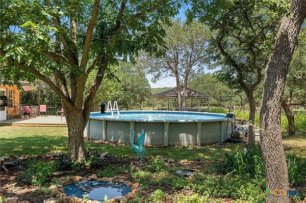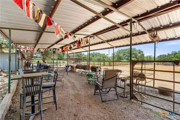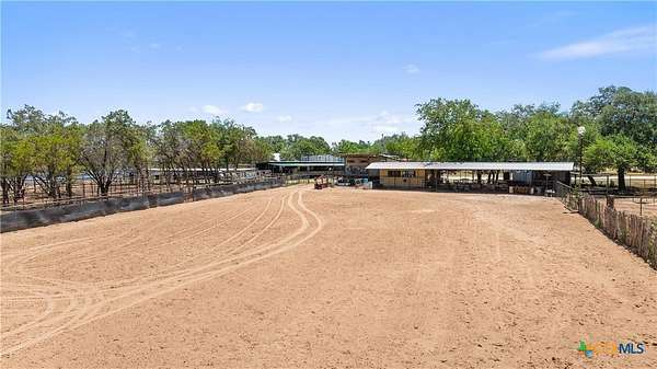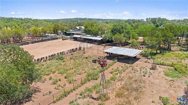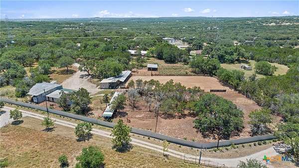A rare opportunity to own a fully improved horse property just minutes from New Braunfels. Tucked away on a quiet dead-end road, this property offers privacy, usability, and a true country feel while still being a stone's throw from town. Mature oaks provide abundant shade throughout, creating a comfortable setting for both horses and people. The 4 bedroom, 2 bath stone home features updated bathrooms, kitchen, and flooring, along with granite countertops, a fireplace, and a 2-car attached garage. A spacious family room opens to a deck with jacuzzi overlooking the arena - the perfect place to relax after a day of riding. Roof replaced approximately 4 years ago and both HVAC systems within the last 3 years, plus upgraded spray foam insulation for efficiency. The property is fully fenced and cross-fenced with an electric gated entrance and is thoughtfully set up for everyday function and entertaining. The lighted arena is well-maintained and actively used, paired with a barn featuring 8 stalls with 20-foot runs, fans, feeders, and automatic waterers. A covered lean-to provides 4 additional stalls, along with multiple paddocks and plenty of room for trailer parking and hookups. A 28x40 metal building serves as a shop with office, full bath, and heated/cooled space, plus a 50-amp RV hookup. Additional covered storage accommodates RVs, horse trailers, boats, or equipment, and the improved road base allows for easy access throughout. The cookhouse is insulated and climate-controlled with windows overlooking the arena and an elevated patio for viewing. Just outside, a charming covered sitting and BBQ area offers the perfect spot for spectating and gathering. Outdoor amenities include a covered back patio, above-ground pool, and gazebo with hot tub - all designed to complement the lifestyle this property offers. Turnkey, functional, and ready for both everyday living and hosting - this is a standout horse property in a prime location.