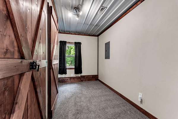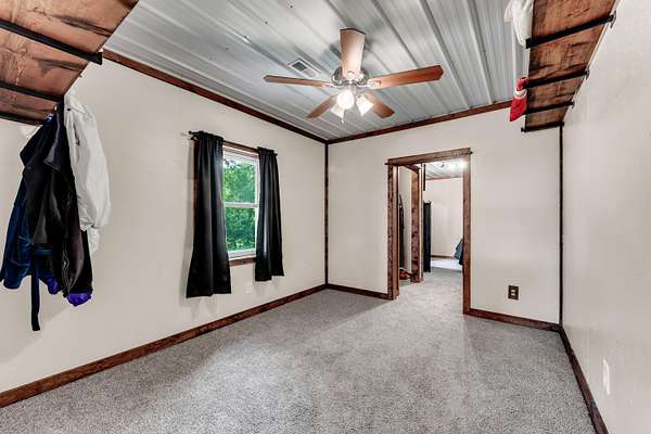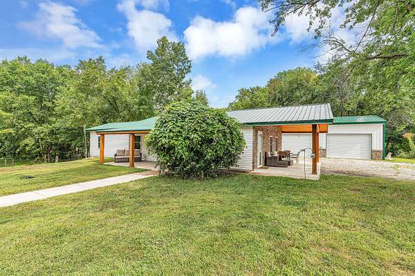 From Lamar, drive north on I-49 to exit 83. Turn left onto V Hwy, then another left onto NW 1st Ln, continue for 1.1 miles to home on right.