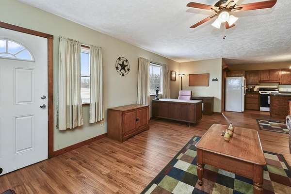 Est $2,001/moDiscover your ideal retreat just 8 minutes from town on 9.77 acres of pasture. With no building or zoning regulations, the possibilities are endless. The cozy living area offers expansion potential, with an incomplete loft ready to double your space. The 34x35 shop, featuring 12' door, is insulated and heated, perfect for large vehicles or equipment. Attached lean-too and shed are ideal for additional storage. Enjoy outdoor space for activities, gardening, or livestock, all secured by perimeter fencing. A foaling shed with tack room suits equestrian needs. Create your dream home or business venture with no restrictions.